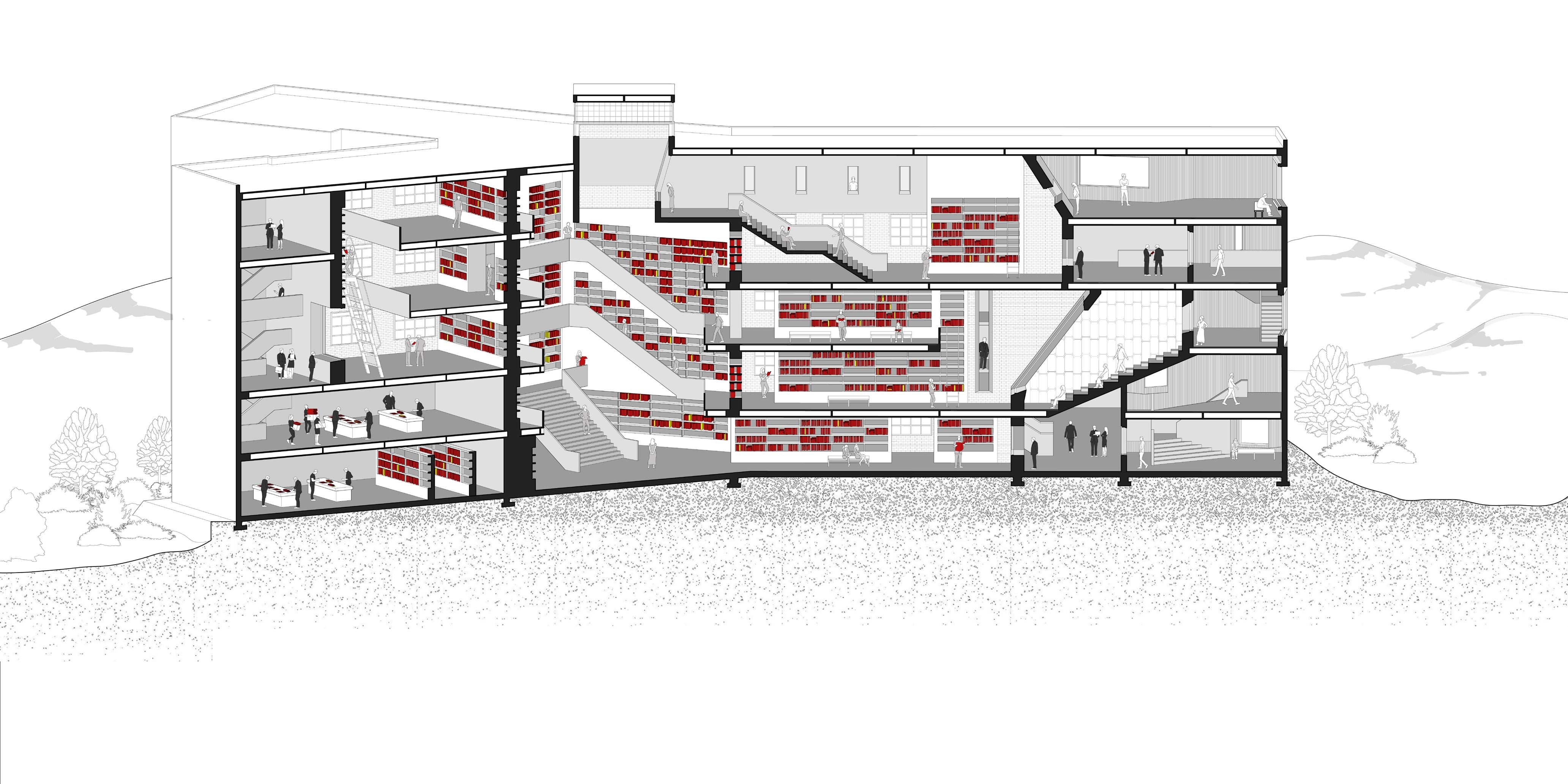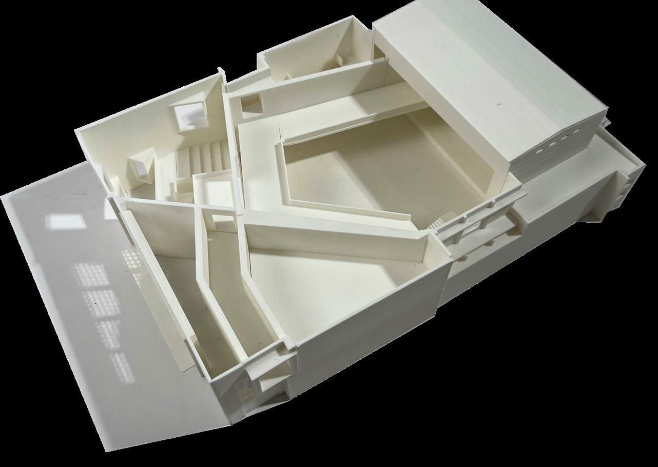 This architectural project is located adjacent to the historic San Michele building, which has previously served as an orphanage, women’s prison, and hospice for the infirm. Drawing inspiration from the plan of San Michele, we analyzed its solid and void relationships and applied these principles to the elevation of our design.