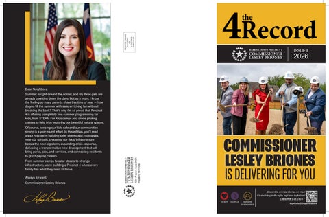 Precinct 4 is one of four precincts located in Harris County, Texas and boasts a population of more than 1.25 million people. The office maintains 1,423 miles of roads and nearly 4 miles of bridges, has 10 community centers with more than 700,000 visitors annually, and supports 55 parks, with 13,455 acres of greenspace.