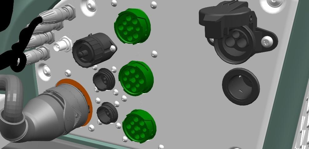 ▪ 9 pin in-cab Isobus connector is standard to install an aftermarket monitor or joystick.