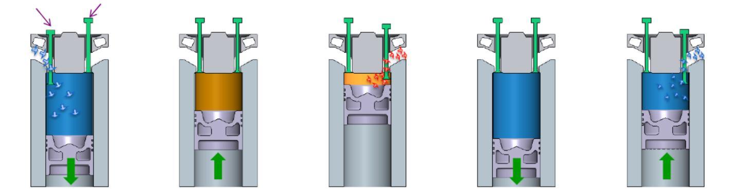 ▪ It releases all cylinder pressure during non combustion cycles. Energy is absorbed by compressing the air at the upstroke, then this pressure is released before the piston gets to the downstroke, removing the air spring effect usually present.