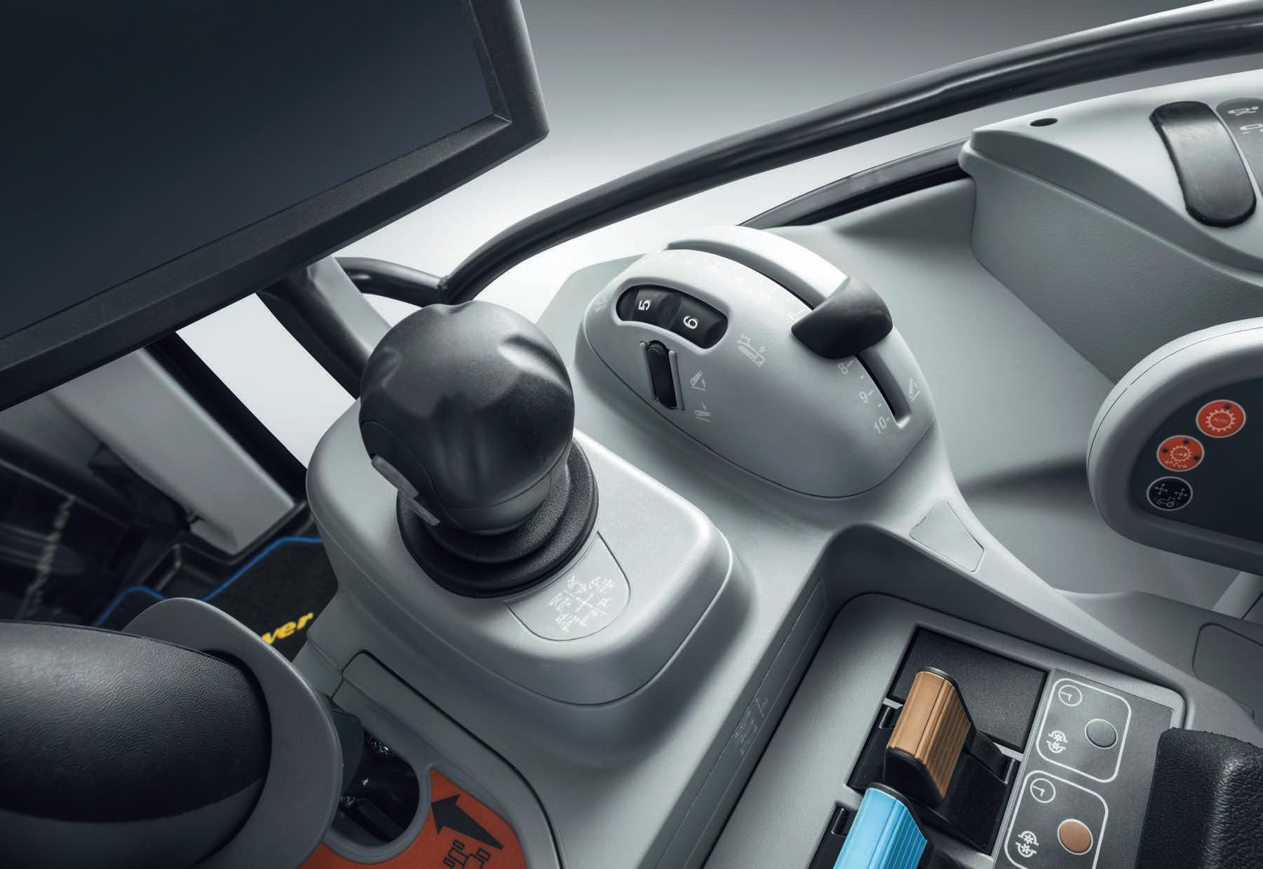 i ett stykke gir deg perfekt sikt uansett hva du møter av vær og omgivelser. Solskjermen beskytter deg mot de sterkeste strålene. Meget lavt støynivå på behagelige 72dB (A) i førerhuset.