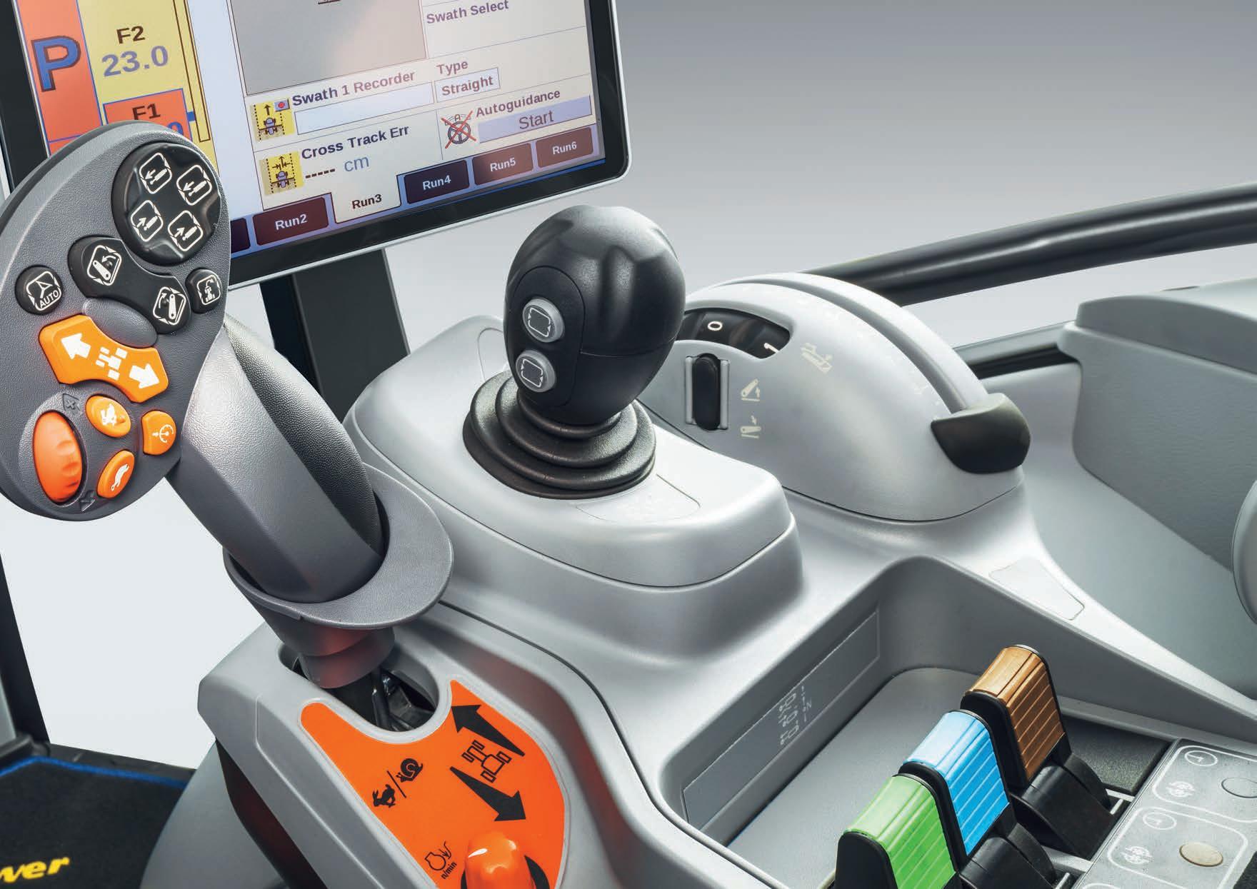 Den avanserte joysticken er det perfekte valget når du utfører intensivt lastearbeid. Enten du fôrer storfe eller flytter baller, er muligheten til å styre elektroniske hydraulikkventiler, veksle mellom forover/bakover og skifte gir på Dynamic Command-modeller ved hjelp av de ergonomisk integrerte knappene uten å måtte flytte hånden fra lasterbetjeningen en sikker produktivitetsforsterker.