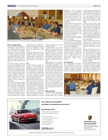 xz Los presentes pusieron encima de la mesa las necesidades de Sotogrande Puerto y deportes náuticos En cuanto al Real Club Marítimo de Sotogrande, representado en el foro por Alfonso Parias, se indicó que está en pleno crecimiento, “ahora somos los que más ayudas necesitamos, si bien es cierto que en el futuro podemos ser los que más podemos dar porque la capacidad de crecimiento de la vela es mucho mayor que del golf o del polo, que ya están a un nivel altísimo”. En una línea similar se posicionó el Puerto de Sotogrande, así, Eli Ramos destacó que ellos también apuestan por la calidad y que, a pesar de que la entidad ha cumplido este año su 25 aniversario, indicó que “cuando la vela esté al nivel del polo o el golf en Sotogrande, nosotros tendremos mucho que aportar. Dentro de todo el engranaje de Sotogrande nos vemos pequeños y por eso debemos ir todos juntos”. Por su parte, el director de explotación del Puerto, Miguel Ángel Díez, indicó que el turismo náutico es potenciador y dinamizador de la economía sobre todo en cuanto a creación de empleo se refiere. Sin embargo, “la crisis ha hecho que el sector pierda un 30% de volumen de negocio y existen retos que superar como las trabas