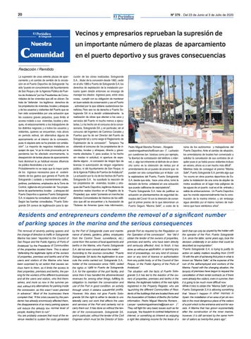 grande Port as required by the Regulation on the Operation of the concession”. Nor “did it obtain the tender of the owners of properties, premises and berths, who have been directly and seriously affected. And, to finish, it has done so without an application, or opening any kind of proceedings, nor any kind of concession or any kind of licence or authorisation from any public body, or of the Council of San Roque, or the Public Agency of the Ports of Andalusia”. The situation with the facts of Puerto Sotogrande S.A has led to the reaction of the owners of properties, premises and berths in the Marina, the legitimate holders of the real rights registered in the Property Register, who are “launching the different Communities of Residents of the buildings that are located there and the Association of Holders of Berths (for further information, Pedro Miguel Mancha Romero , Lawyer <pedromiguelmancha@icam.es> )”. They will fight for very basic issues such as for example, “the freedom to contract telephone or internet, or something as inherent as enjoying a right like obtaining income for the lease of a
