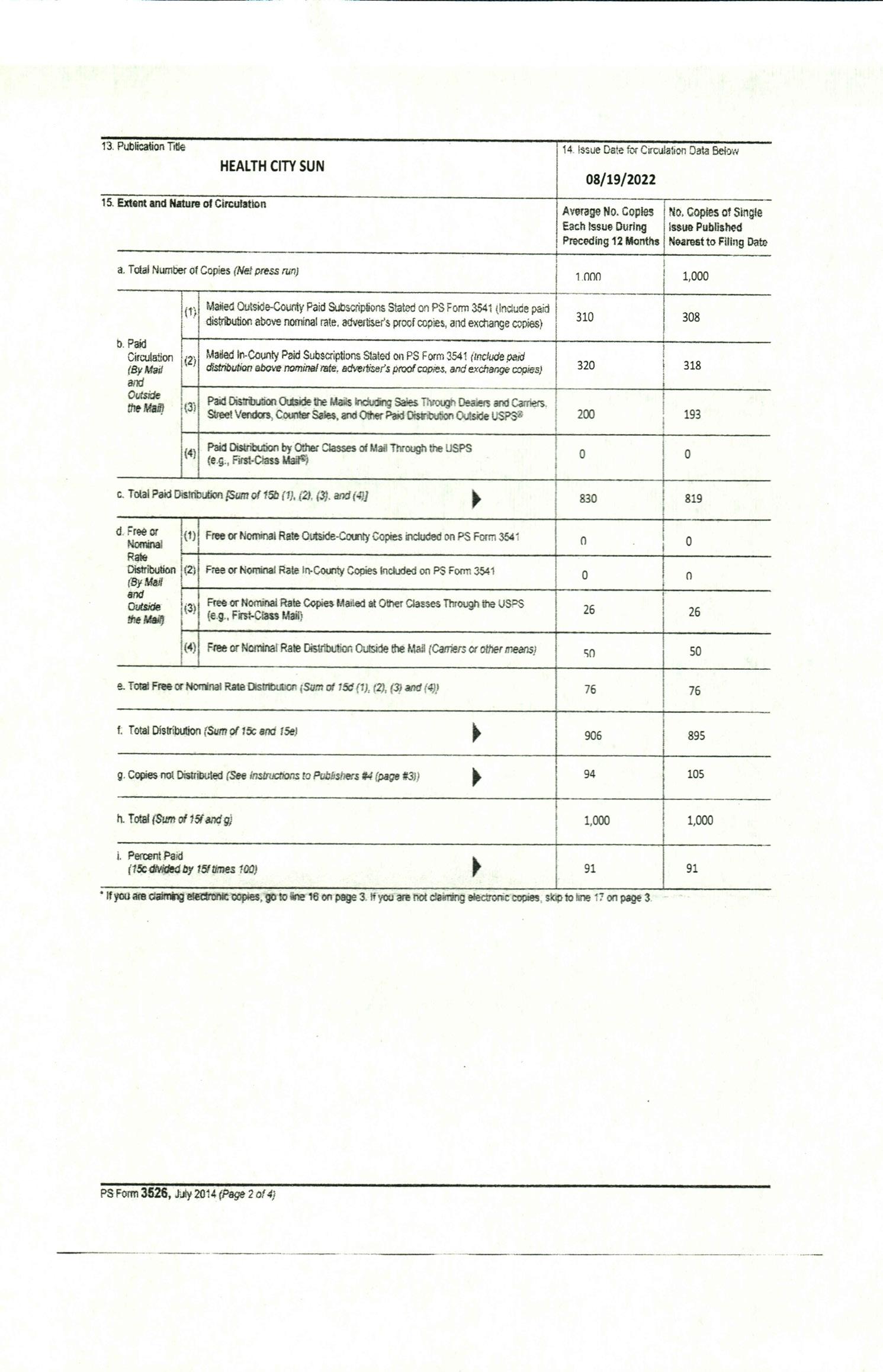 The Health City Sun (USPS 238-620) is published weekly by TJPress Publishing LLC, d/b/a Health City Sun, 6300 Montano NW Ste. G3,2nd floor, Albuquerque, NM 87120. Copyright © 2012. Reproduction of any kind without the permission of the publisher is prohibited. Annual sunscription is $24. Periodicals postage paid atAlbuquerque, NM 87101-9651. POSTMASTER: Send address changes to Health City Sun, P.O. Box 67560, Albuquerque, NM 87193