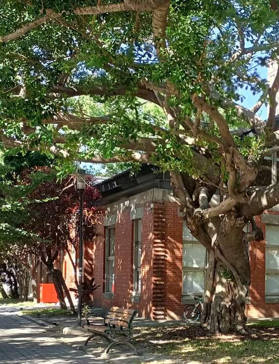 蒼翠挺拔的大樹為人們遮擋那強烈的陽光,然 而能讓大樹歷經風吹雨打依舊傲然挺立的是那深埋在 土裡的根。根深深的扎在土裡吸收著養分,讓樹木茁 壯成長,讓樹木能在此屹立不搖;根深深的扎在土裡, 讓樹苗成為大樹,紅磚堆砌成的房屋,記錄著日治時 期到今日的百年歷史,從診療所、衛生試驗所、警訊 所至現今的圖書館,大樹與房屋一同看著時代更替、 日出月落、斗轉星移。 竹風雅軒第41期