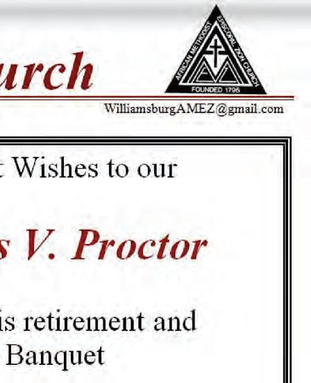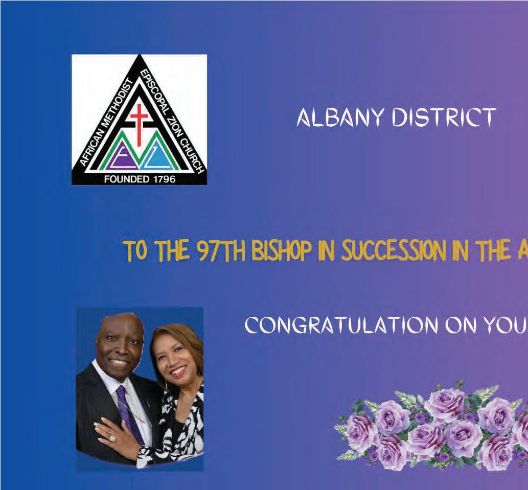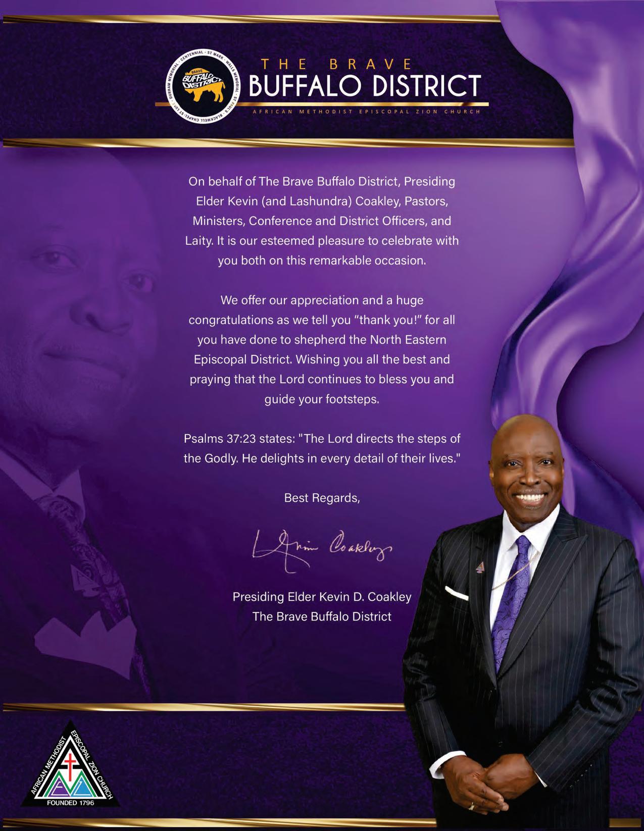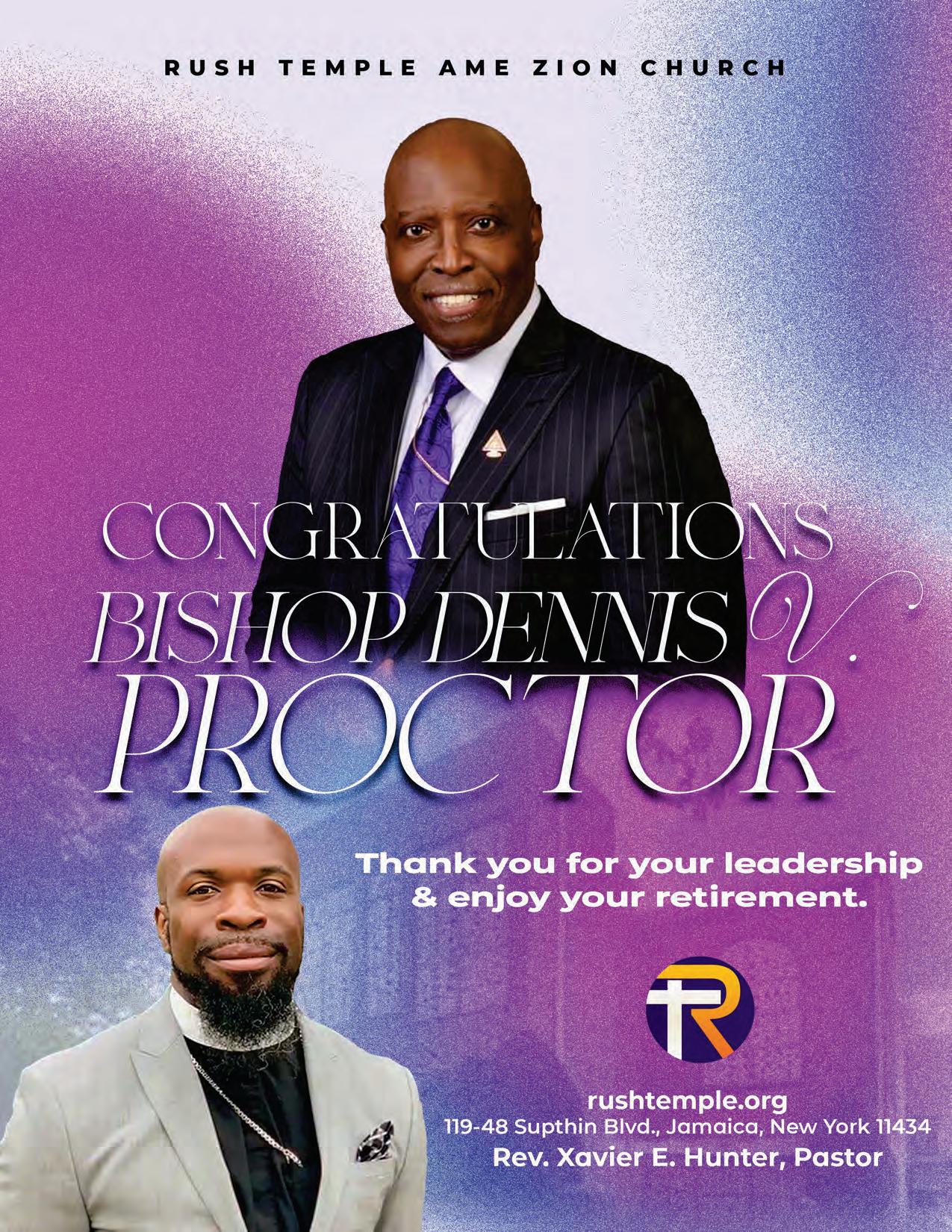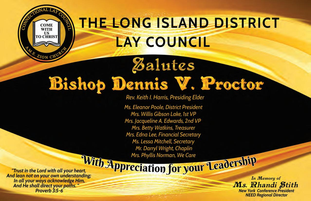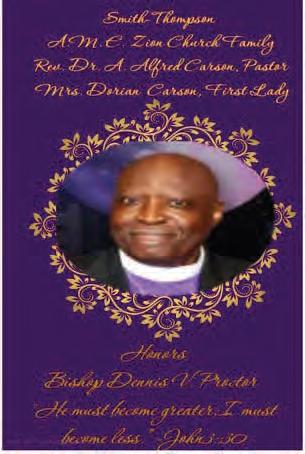 Congratulations to you, Bishop Proctor, aswe celebrate your faithfulness to GOD and amazing leadership ofTheAfrican Methodist Episcopal Zion Church.