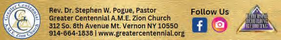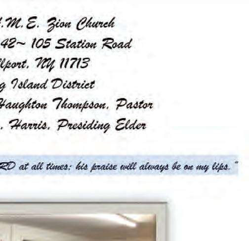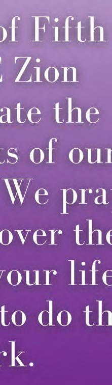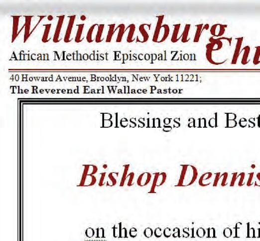 We thank God for your leadership, dedica on, and Chris an service to God and to the New York Conference, African Methodist Episcopal Zion Church.