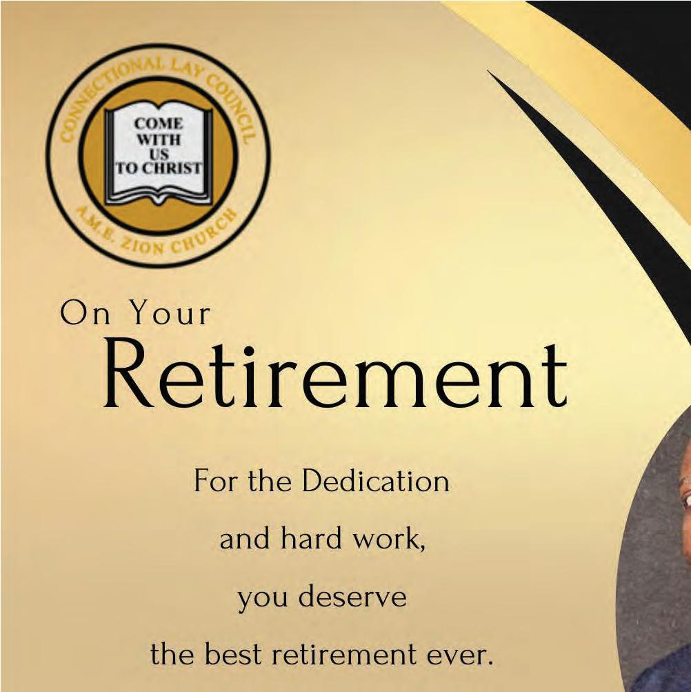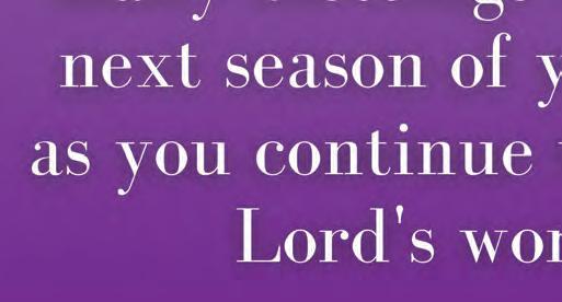 As you prepareto go forth to the next chapter of your Chris an journey, we are all prayingfor a well-deserved re rement overflowingwith his abundant blessings.