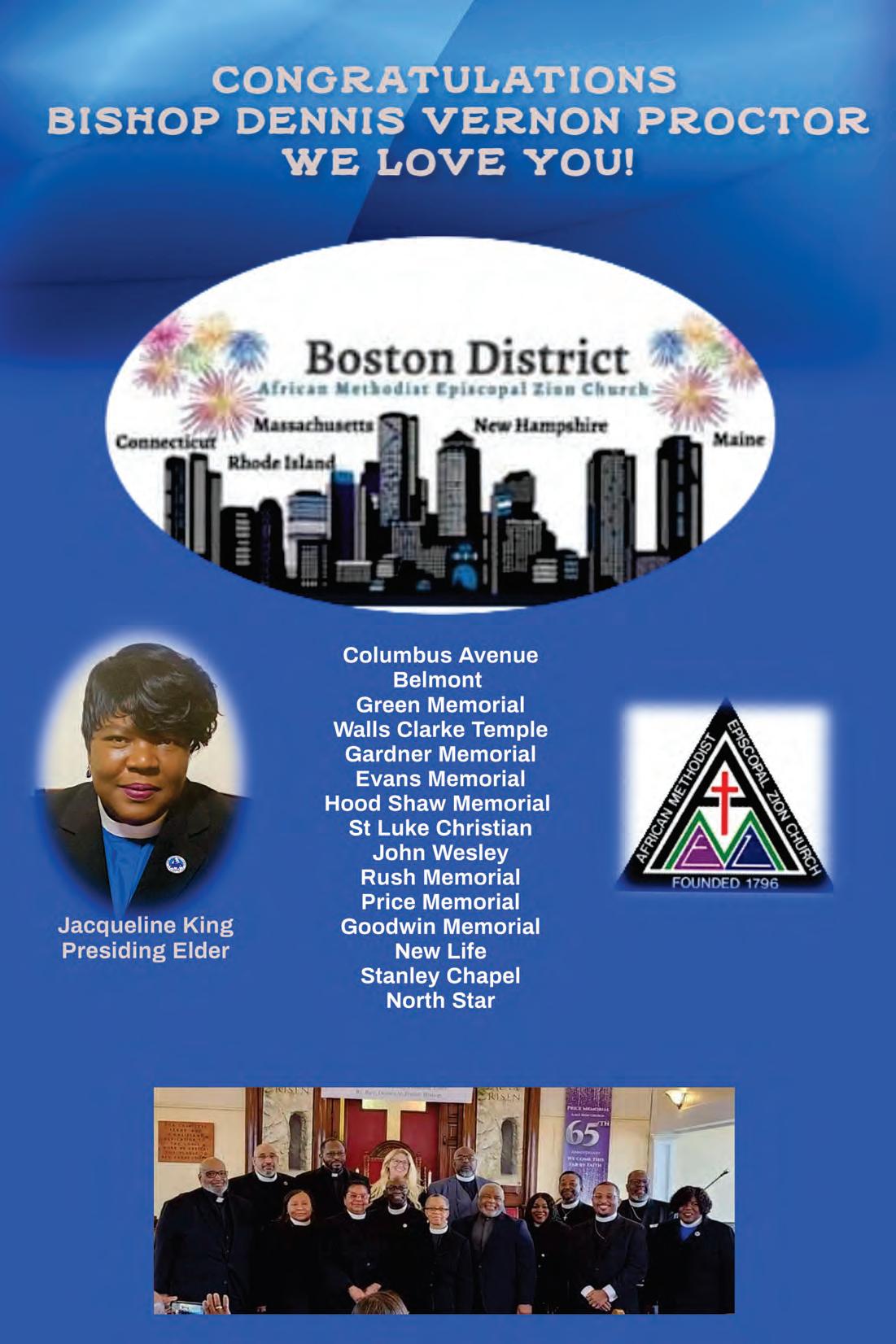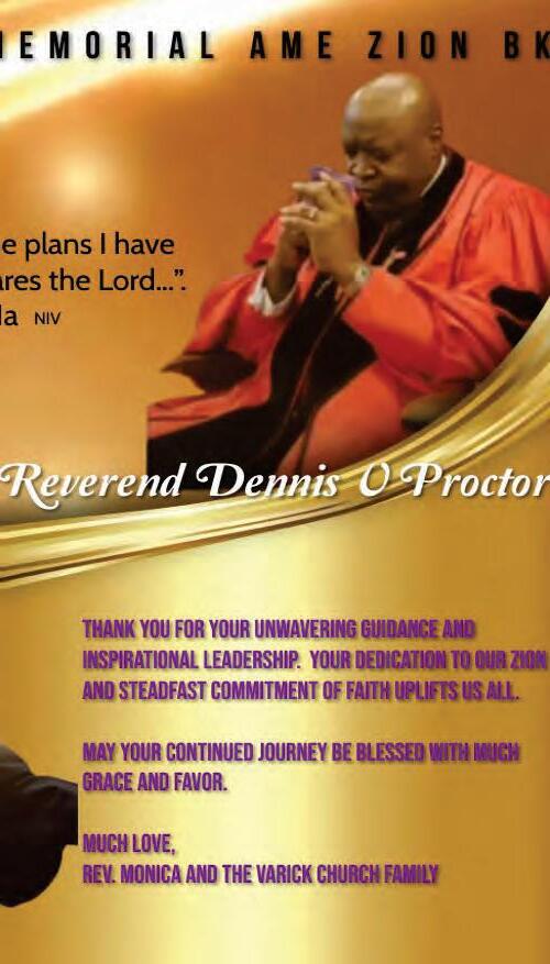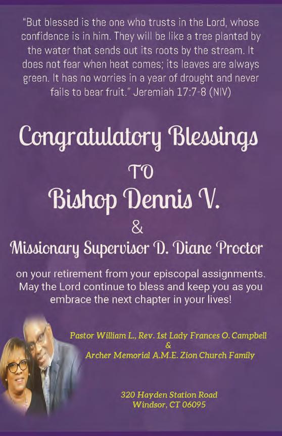 NEW Congratulations & Blessings BISHOP DENNIS V. PROCTOR PRESIDING PRELATE • NORTH EASTERN EPISCOPAL DISTRICT For Faithful and Exemplary EpiscopalLeadership To The Mother Episcopal District Our BelovedA.M.E. Zion Church