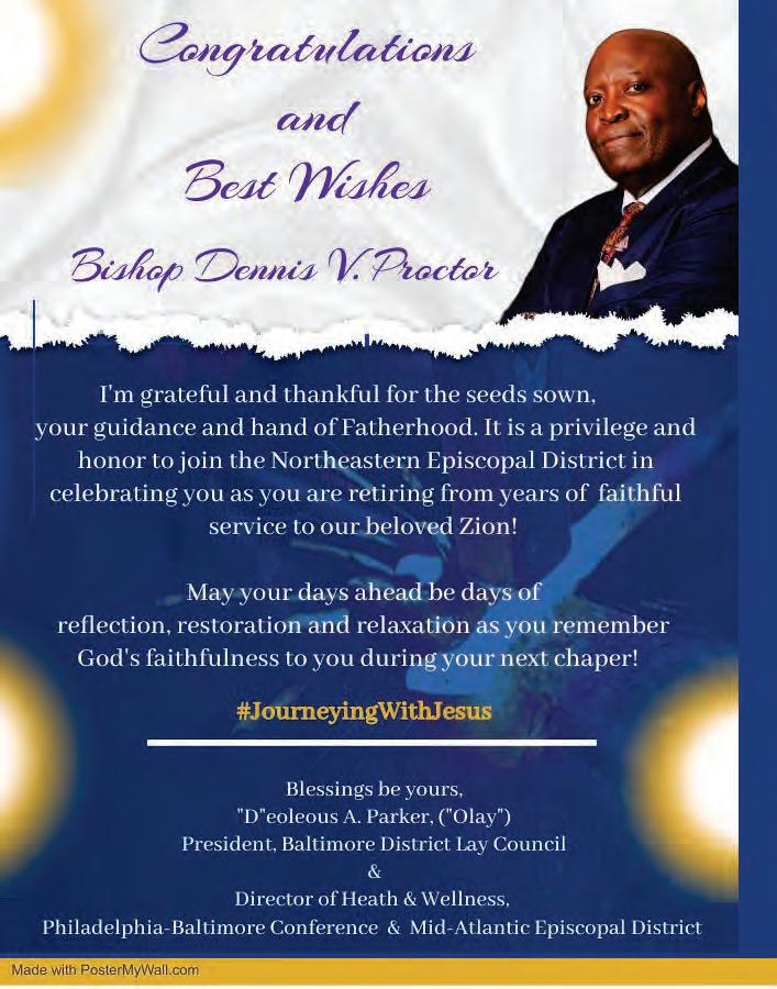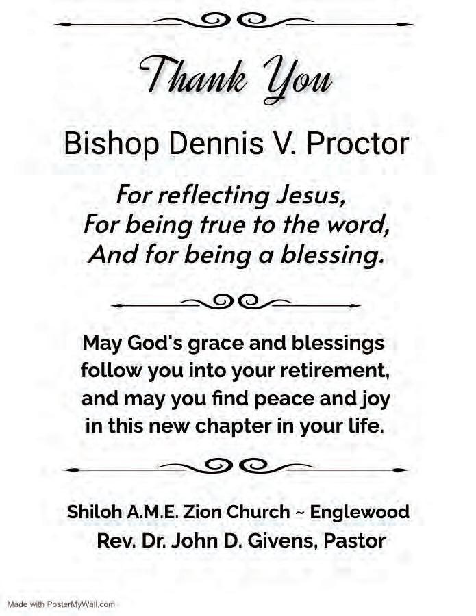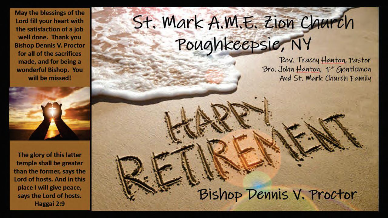 Congratulations Bishop Dennis V. Proctor, and enjoy your retirement.