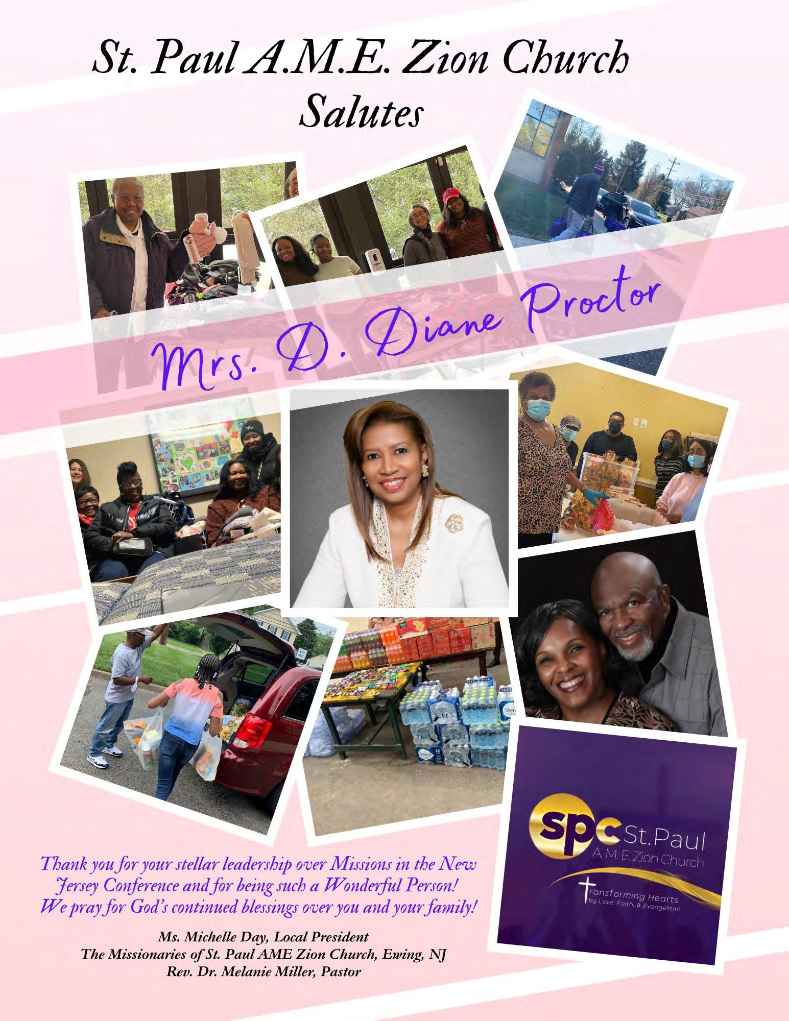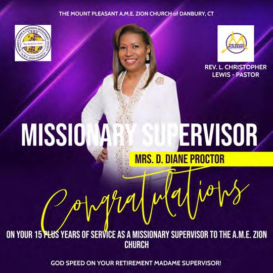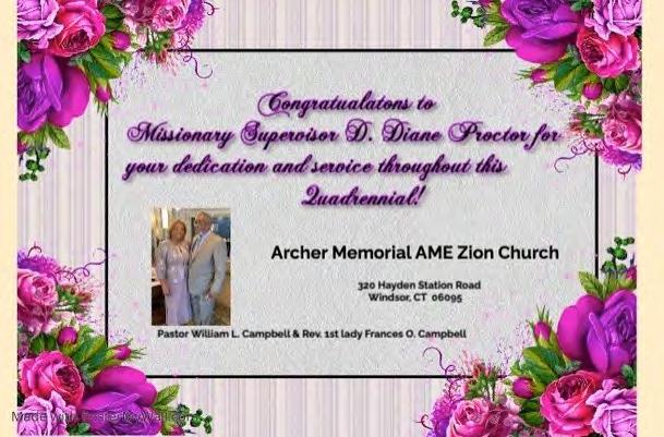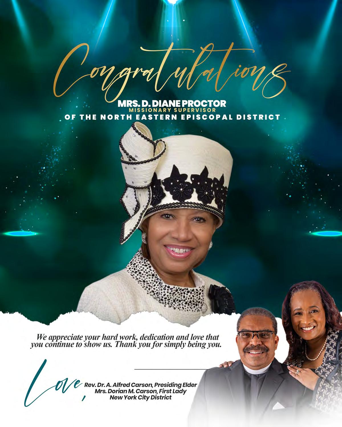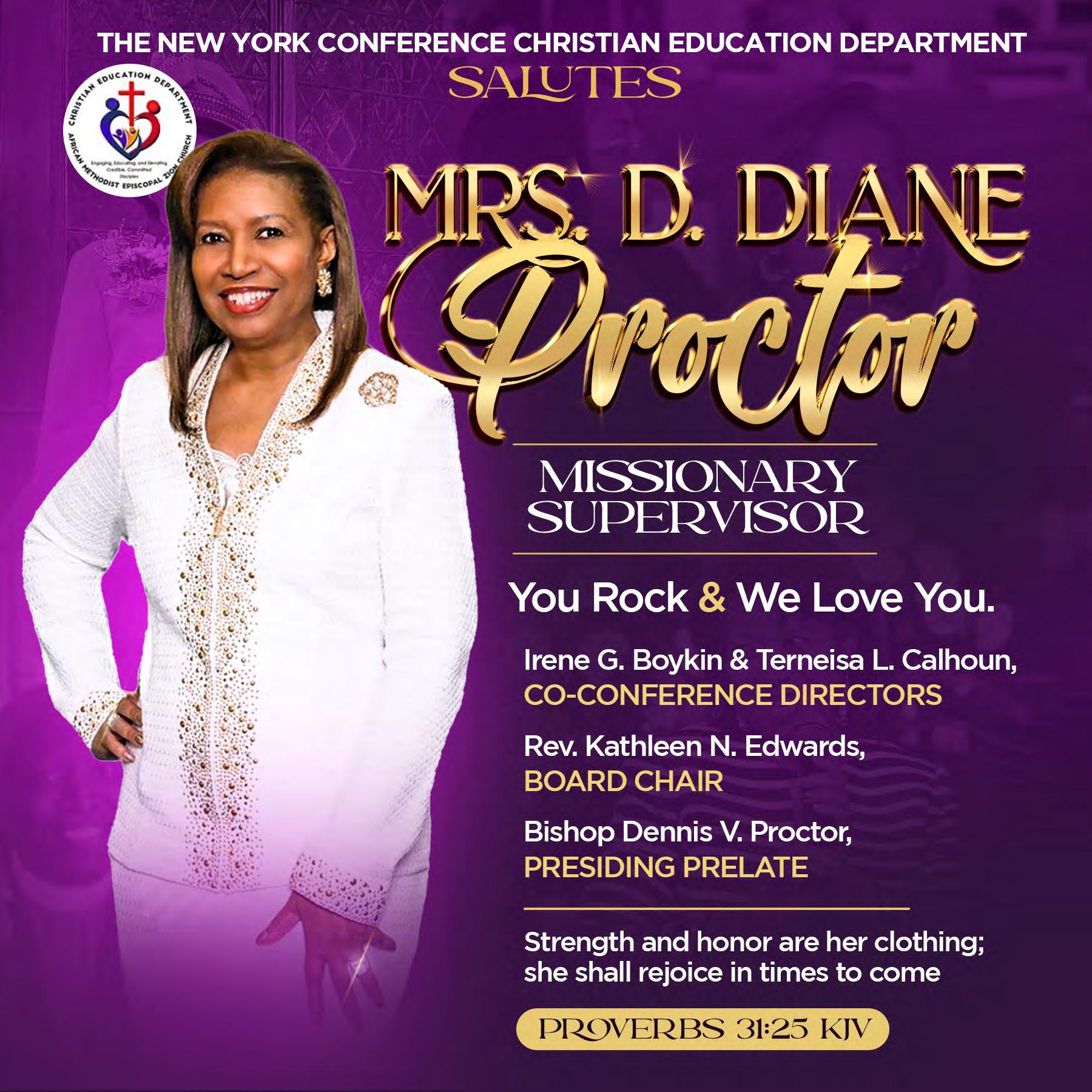 Congratulations Mrs. D. Diane Proctor on your faithful years of service as our Queenly, beautiful, intelligent, loving, compassionate and dedicated Missionary Supervisor.