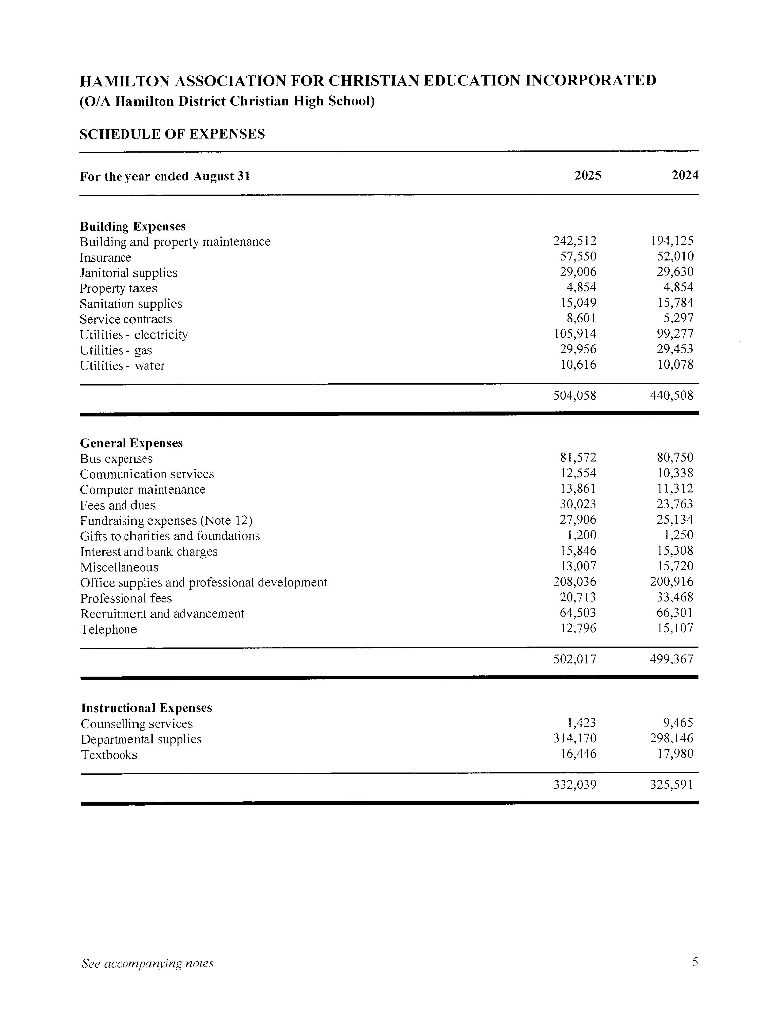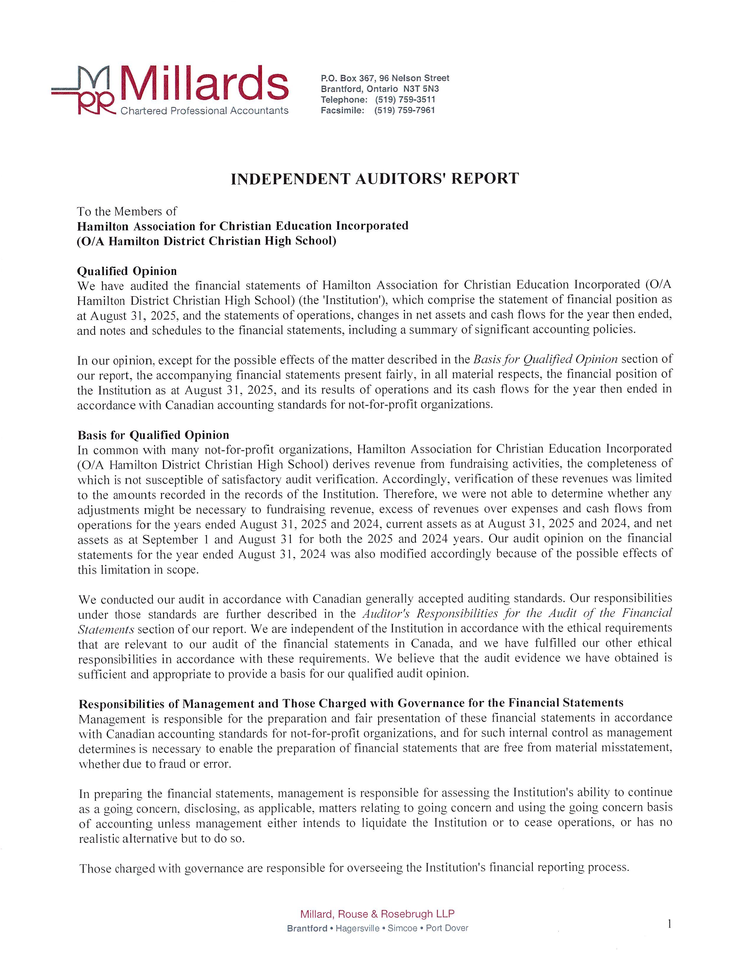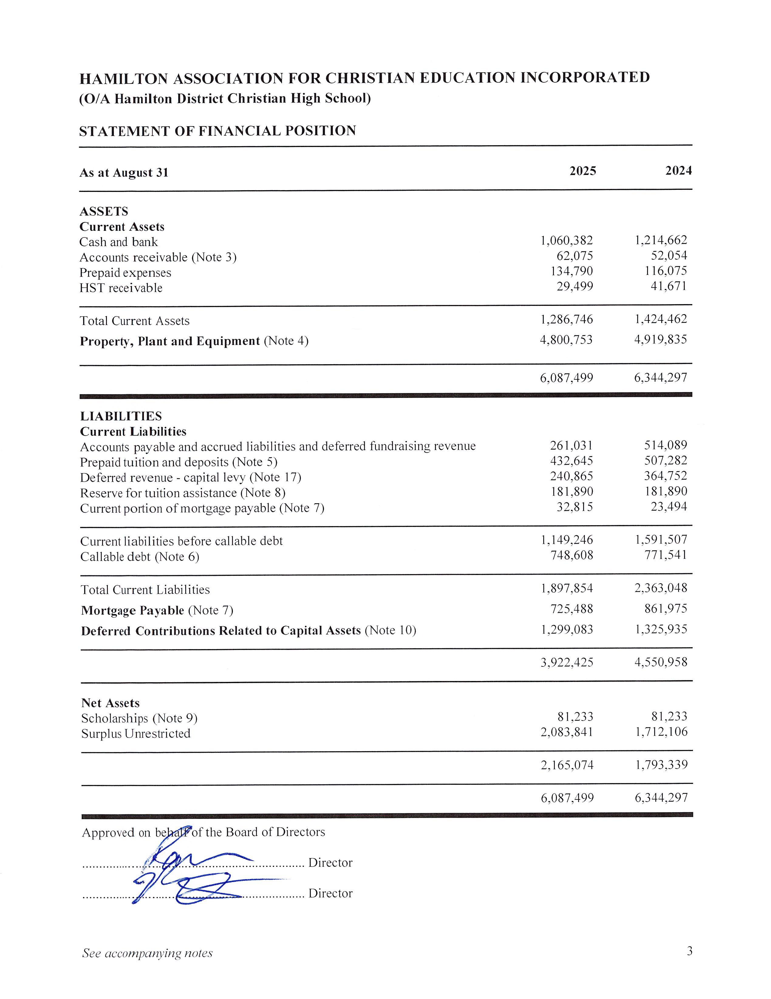 Aug 2025 Signed Financials by Hamilton District Christian High - Issuu