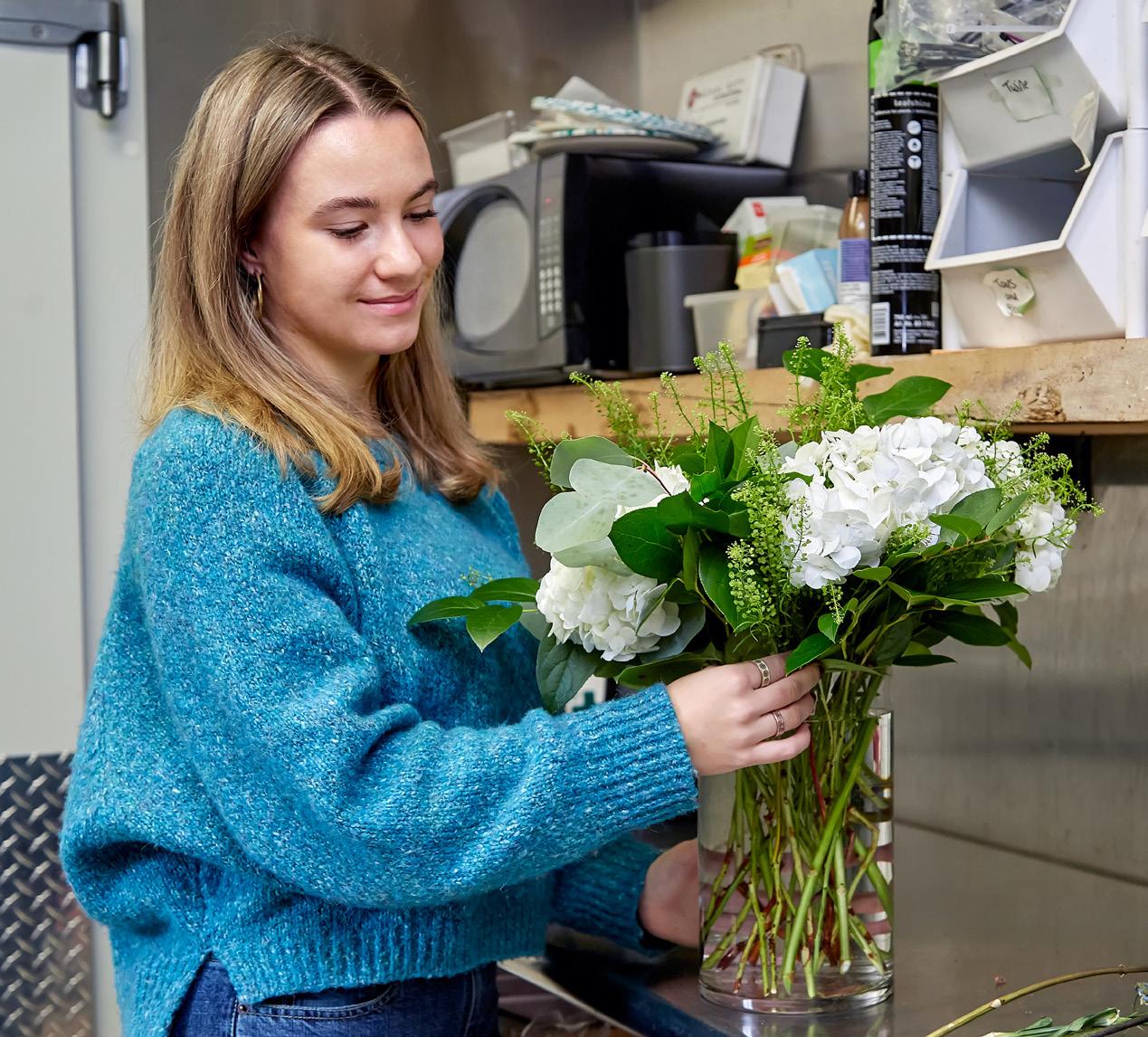 Sadie creates cheerful bouquets at Gray’s Florist.
