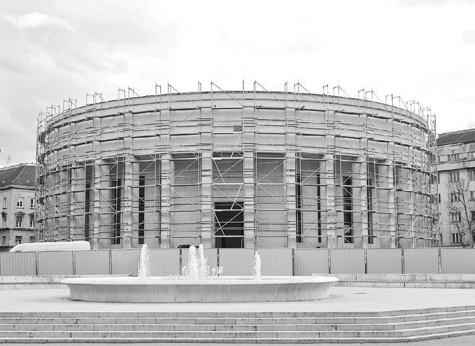 Naša trenutna stvarnost uključuje gradska pročelja zakrivena zaštitnim ceradama s logotipima građevinskih tvrtki. Paradoksalno, tvrtke izdašno plaćene za obnovu besplatno se oglašavaju na velikim površinama u centralnim lokacijama glavnog grada, što bi, prema cjeniku oglašavanja, visoko kotiralo.