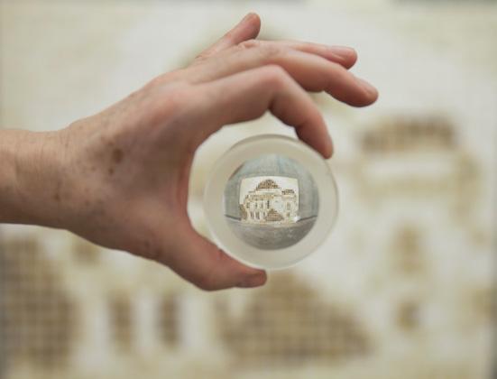 Ovaj rad vizualizira problem fine prašine koji u Grazu postoji već dugi niz godina. Nataložena prašina skuplja se s povijesnih zgrada tijekom suhog vremena i jedino je bojilo koje čini osnovu porculanskih slika. Gledanje slike izbliza otkriva spektar boja prašine, dok gledanje kroz leću otkriva zgradu. / www.barbaraschmid.at