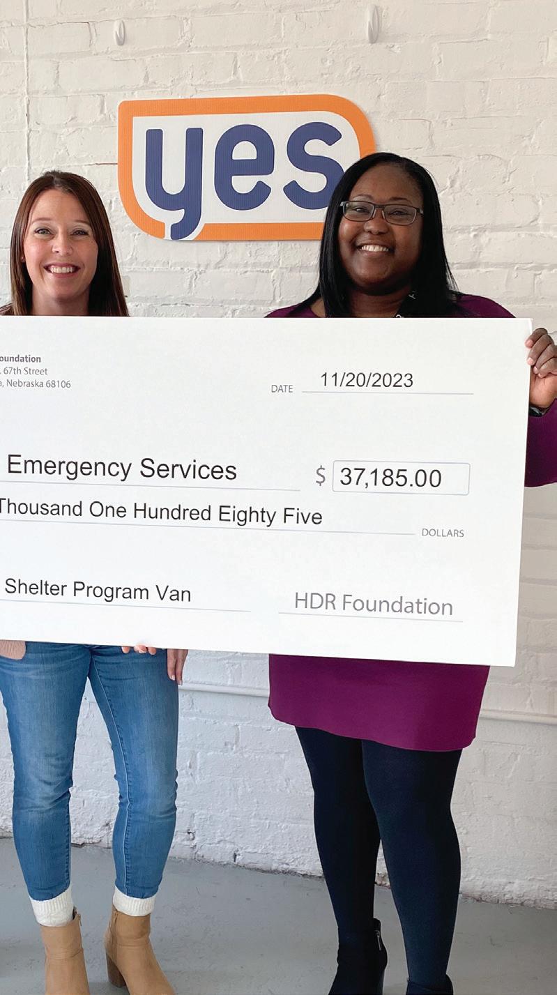 02. Youth Emergency Services: $37,185 | Omaha, NE | Employee sponsor: Monique Wyatt Monique Wyatt, right, presents a check to YES staff.
