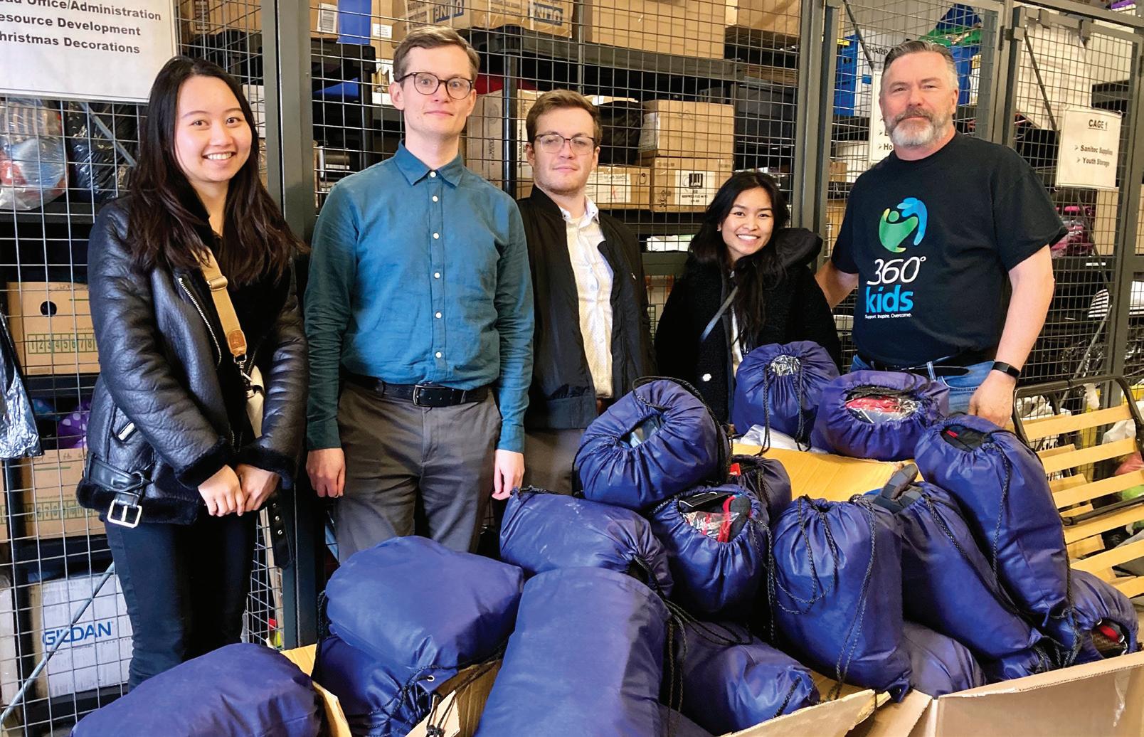 03. 360°kids: CA$5,000 | Markham, ON | Employee sponsor: Dawn Padiernos Janice Look, Aliaksei Maksachou, Jacob Pacheco-Phillips and Dawn Padiernos deliver hygiene kits to Daniel Zaroski from 360°kids as part of an HDR Canada Fund grant.