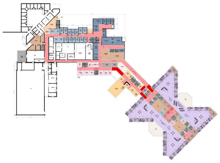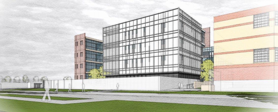 To accommodate the additional housing and support functions, a new 8-story tower will be constructed to the southeast of the PSB on West Wilson Street. The new tower will connect at