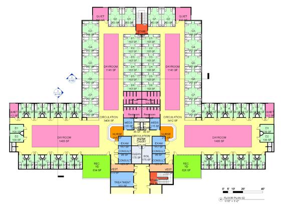Design drivers for the project include the desire to provide abundant daylight into resident and staff areas, to provide programming spaces appropriate for the population, to improve access to and delivery of health care services to residents, and expanded capabilities for visitation with residents. The PSB will remain fully operational during the entire project.