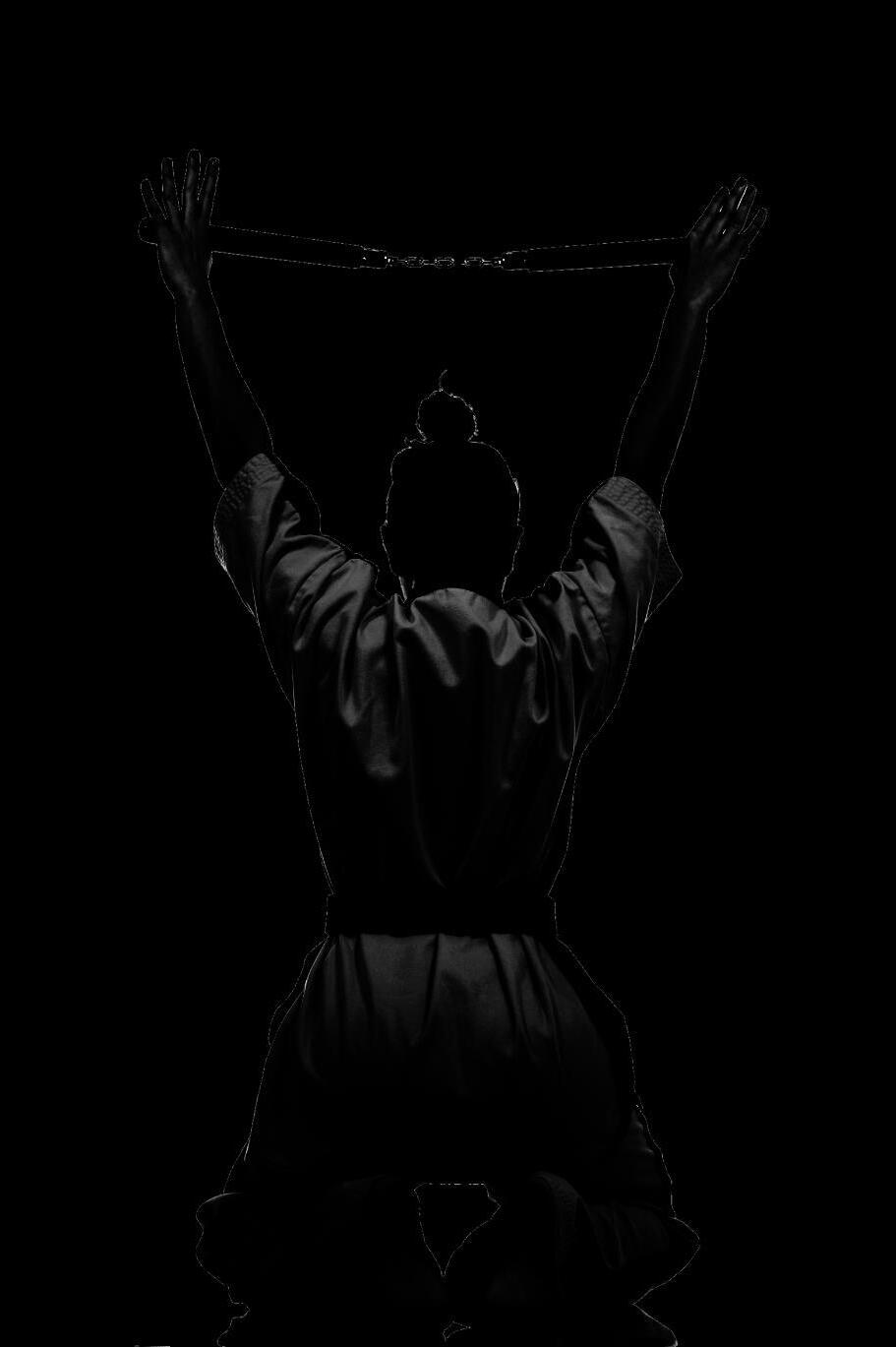 21. Two spins backward, bring the nunchakus onto the shoulders, double strike to two spins forward and bring the nunchakus under the armpits