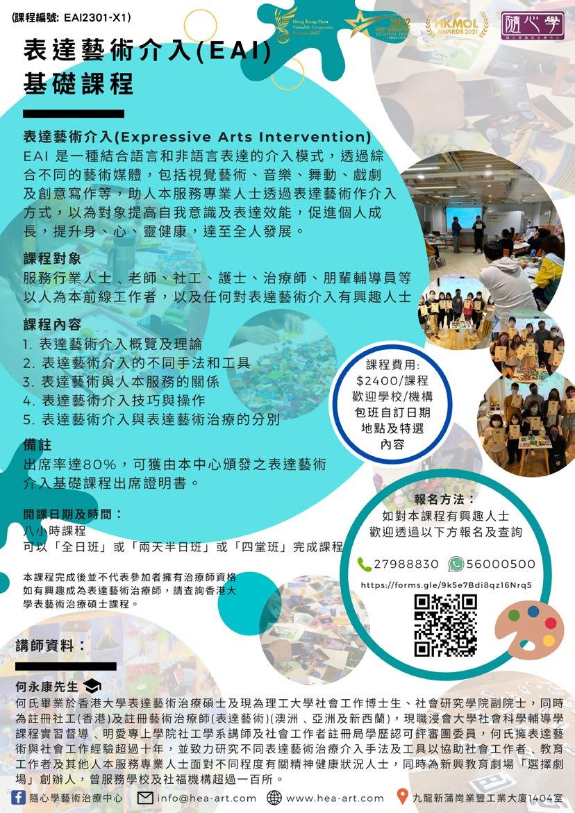 隨心學藝術治療中心隨心學成立於2018年,專注 提供到校SEN課程,本治療中心由不同表達藝術 治療師、言語治療師、資深社工組成,目的是透 過多感觀學習、經驗和表達去讓學生成長。本治 療中心曾服務超過百多所中小學及社福機構。