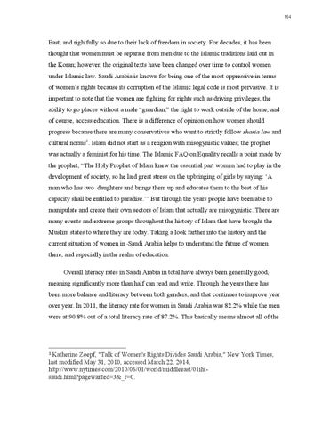 1 Katherine Zoepf, "Talk of Women's Rights Divides Saudi Arabia," New York Times, last modified May 31, 2010, accessed March 22, 2014, http://www.nytimes.com/2010/06/01/world/middleeast/01ihtsaudi.html?pagewanted=3&_r=0.