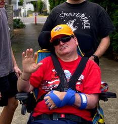 “You can’t keep me down. I’m a rock,” says Ron. ”I’ve been back at the gym for about six months now. I want to get back to my initial fitness level, bulk up a bit and improve my maneuverability.” Ron had head on with a car on a push bike without a helmet at age 24.
