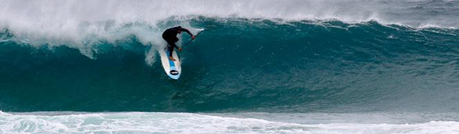 Wes charging down a solid wave