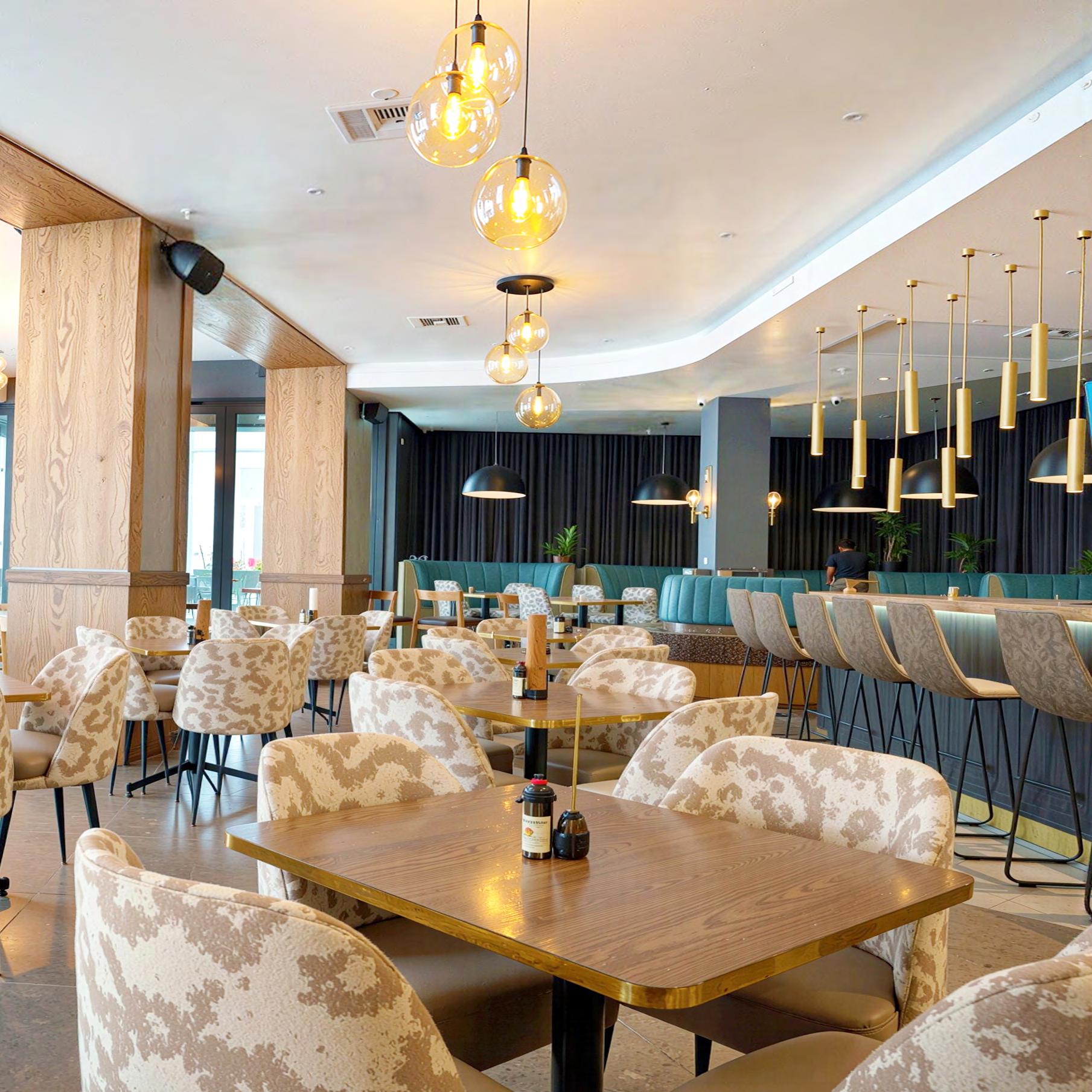 “We wanted to ensure that we achieved even coverage throughout the interior of the lounge, including across the bar area, the dining booths on the outer edges and the more open atrium at the front of the restaurant,” De Vrye explains.
