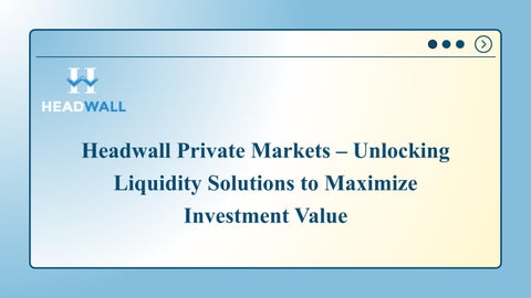 Headwall Private Markets is a liquidity provider for private company shareholders and investors. Our main focus is secondary transactions in mid to late stage private companies. In addition, Headwall has select primary investment opportunities.