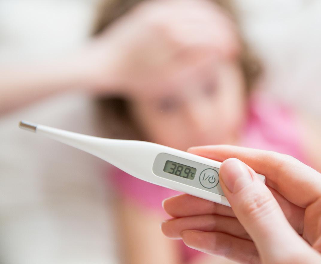 A fever (pyrexia), in most adults, is an oral temperature above 38°C (100.4°F). A child has a fever when their armpit (axillary) temperature is 37.6°C (99.7°F) or higher. Very high temperatures in children can result in febrile convulsions.