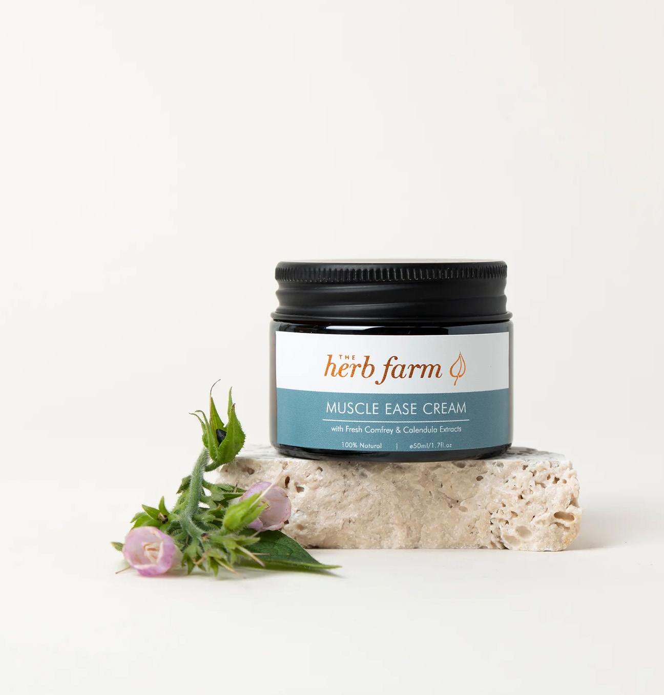 Introducing Herb Farm's Muscle Ease Cream - a soothing solution for discomfort. Crafted with natural herbs, this cream offers targeted relief, easing tension and stiffness. With its unique blend, it penetrates deeply, promoting healing and restoring well-being. Experience the power of nature with Muscle Ease Cream. THE