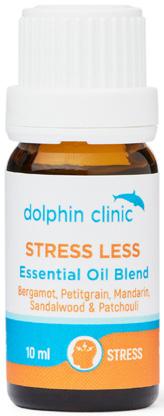 Dolphin Clinic Stress Less Essential Oil Blend contains: Bergamot, Petitgrain, Mandarin, Sandalwood and Patchouli.