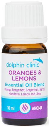 Dolphin Clinic Oranges and Lemons Essential Oil Blend contains: Orange, Bergamot, Grapefruit, Neroli, Mandarin, Lemon and Lime. These essential oils contain esters and aldehydes, which are relaxing and calming to the nervous system. When diffused together they can soothe worry and have a general uplifting affect.