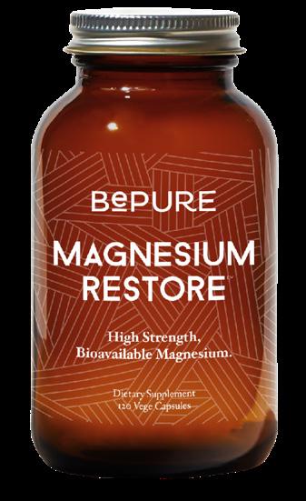 Signs that your magnesium levels could use a top up Introducing BePure Magnesium Restore BePure Magnesium Restore contains 300 milligrams of magnesium in bisglycinate form. This gut-friendly, highstrength, bioavailable magnesium is paired with L-carnitine to support muscle relaxation, stable moods, deep sleep, steady energy levels and stress resilience. Rest assured - BePure Magnesium Restore has got your back!