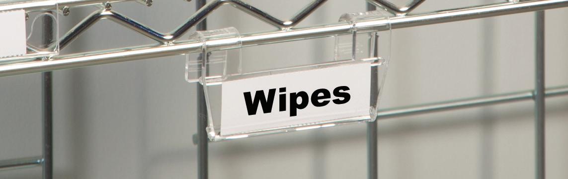 Easy Content ID - Plastic clip attaches to wire shelving and baskets for easy supply identification and organization.