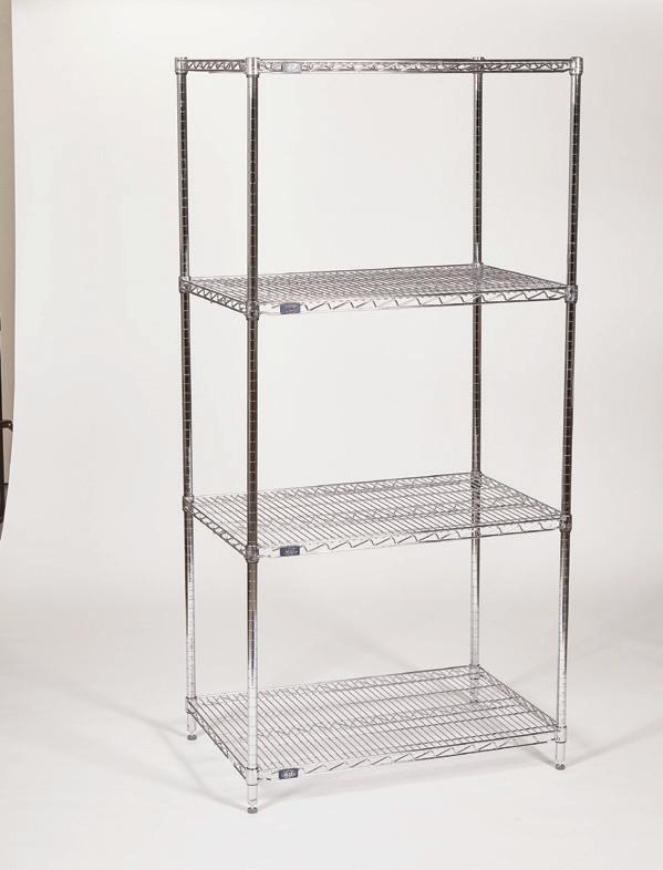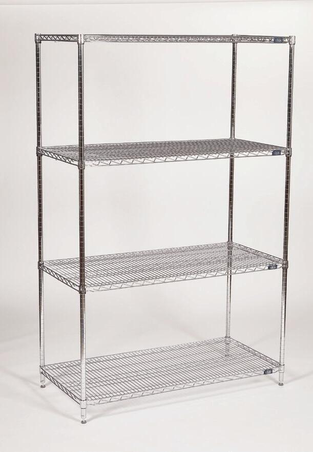 Includes: - 4 chrome-plated shelves - 4 posts per unit - 4 plastic clips per shelf