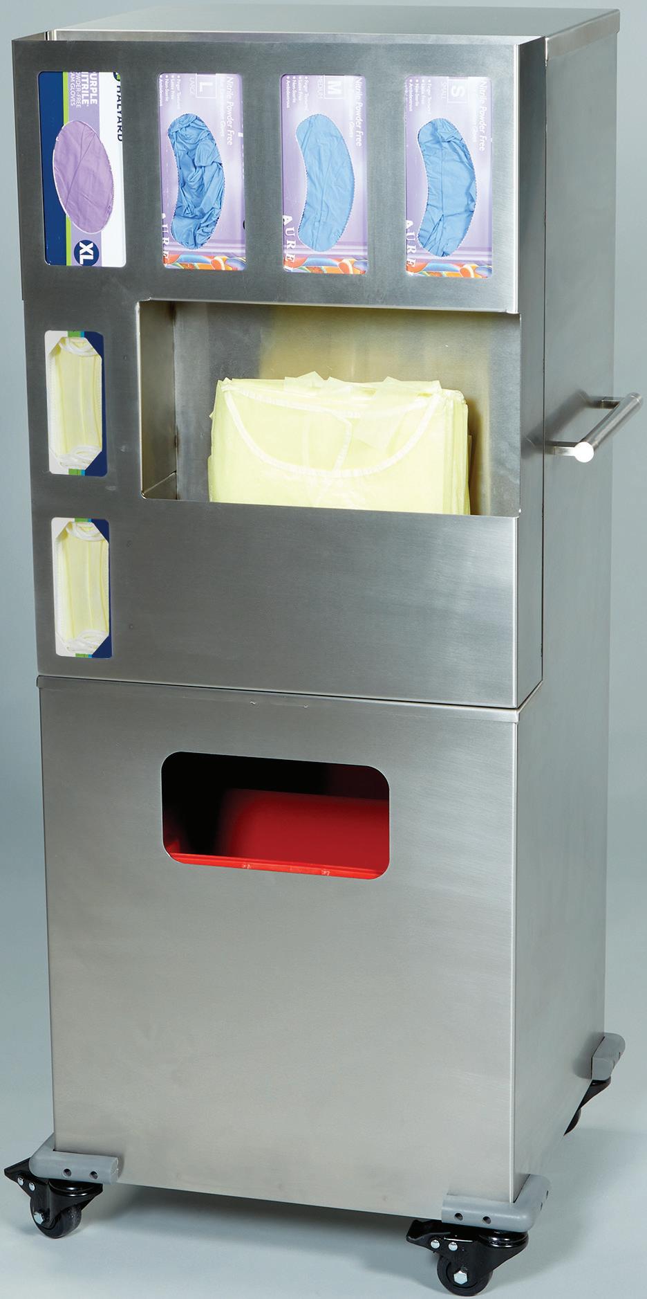 All-in-One - Sturdy, mobile solution to store, retrieve and dispose of PPE.
