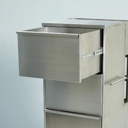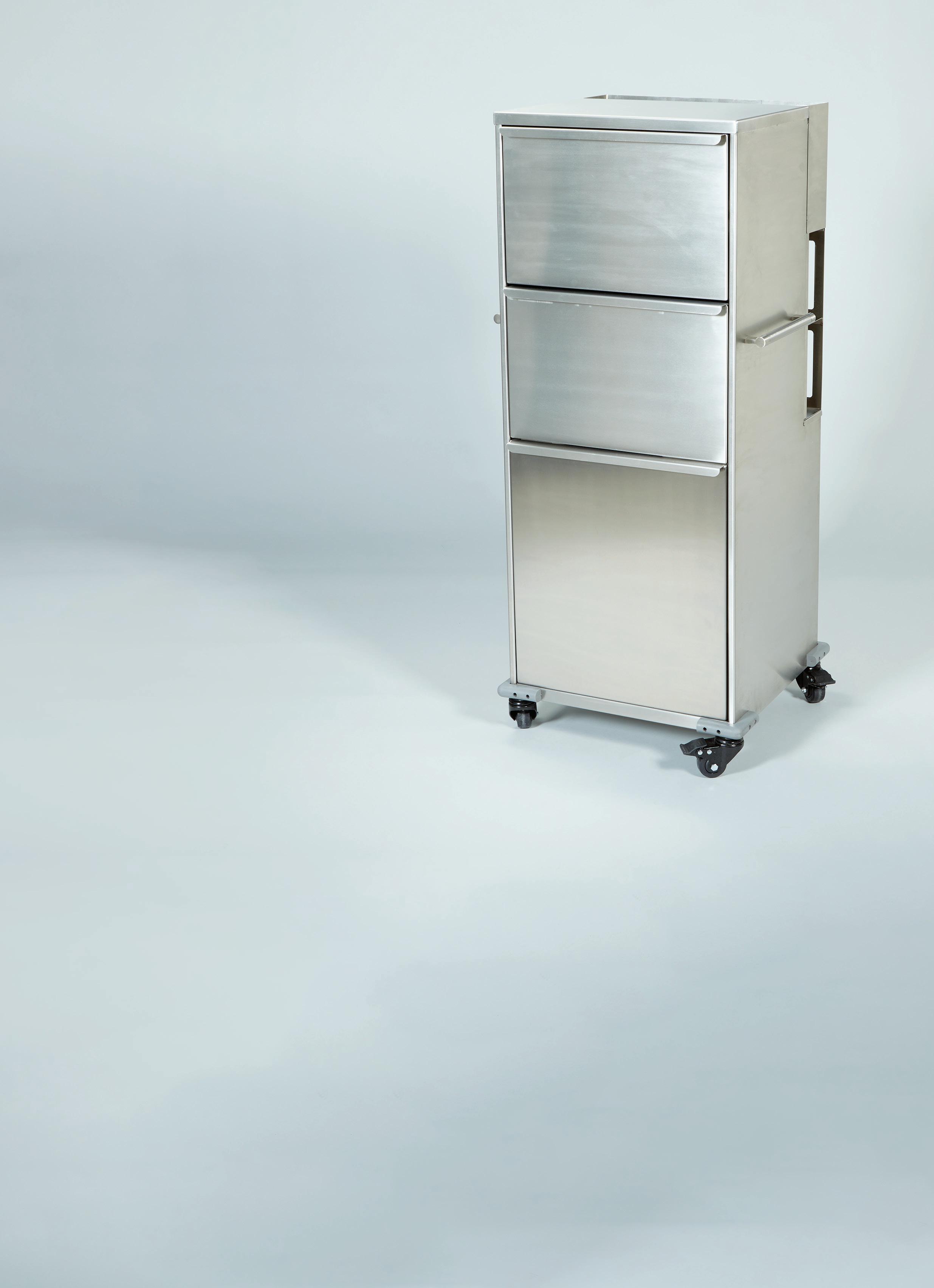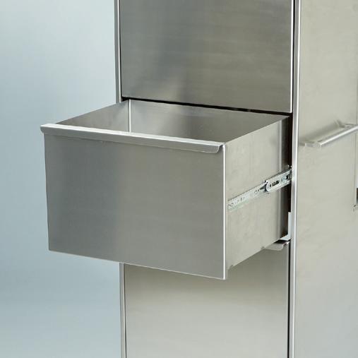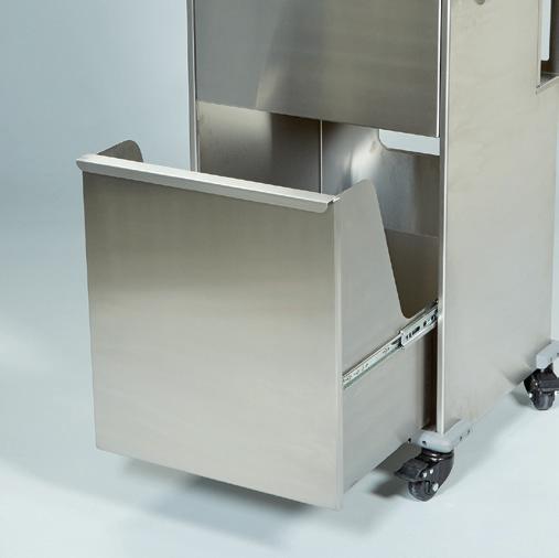 - Bottom drawer holds (1) 8-gallon waste container (20284, 20269, 20282 or 20272, sold separately); adjustable divider holds container in place