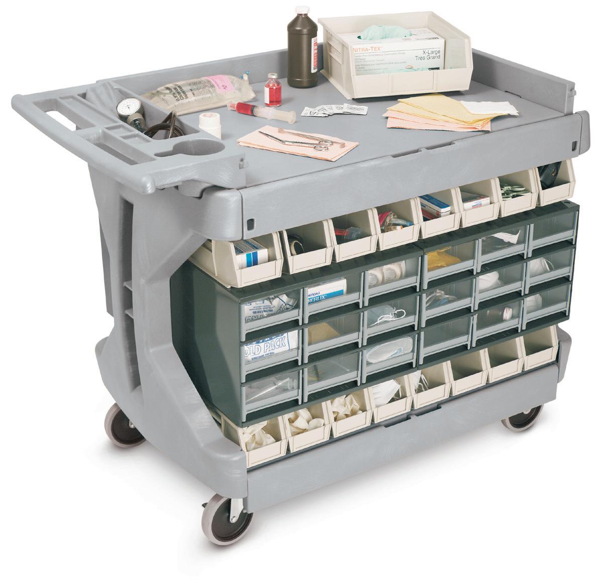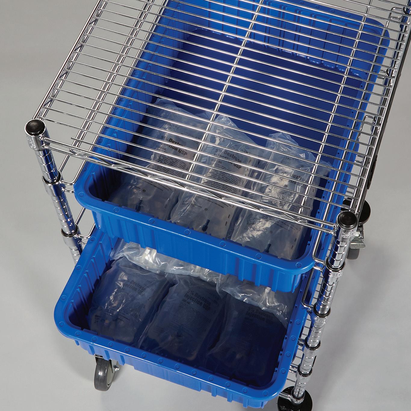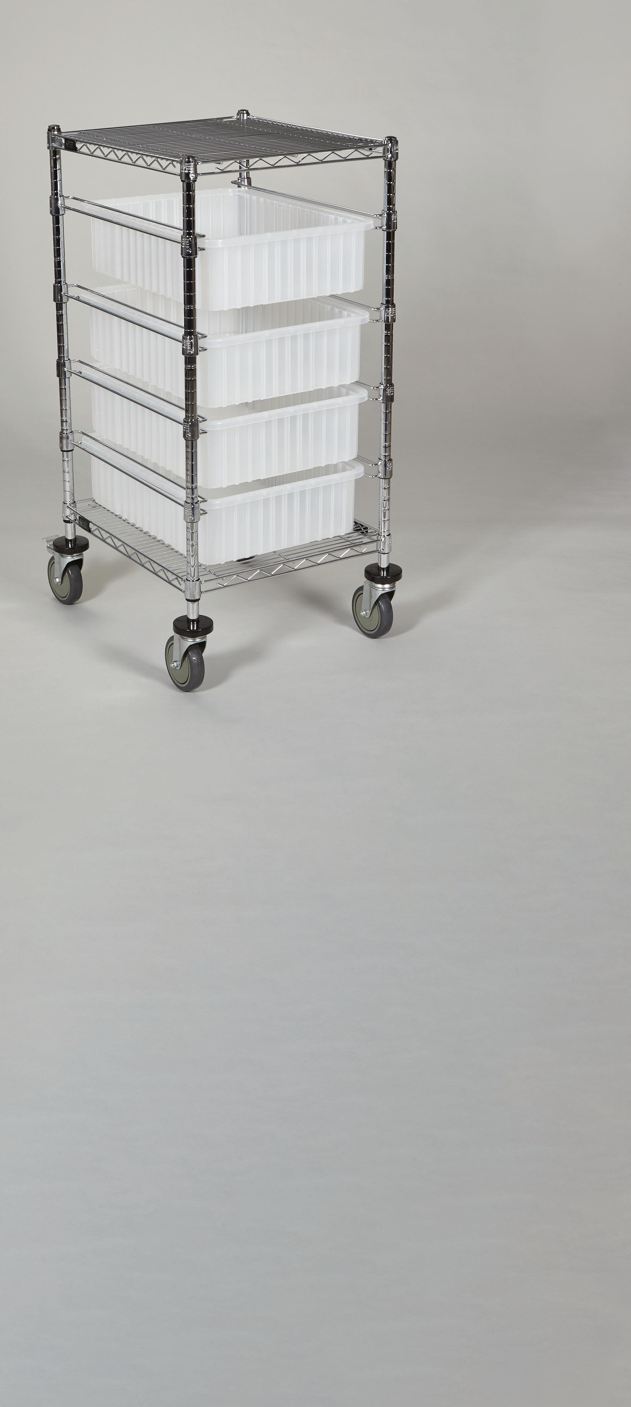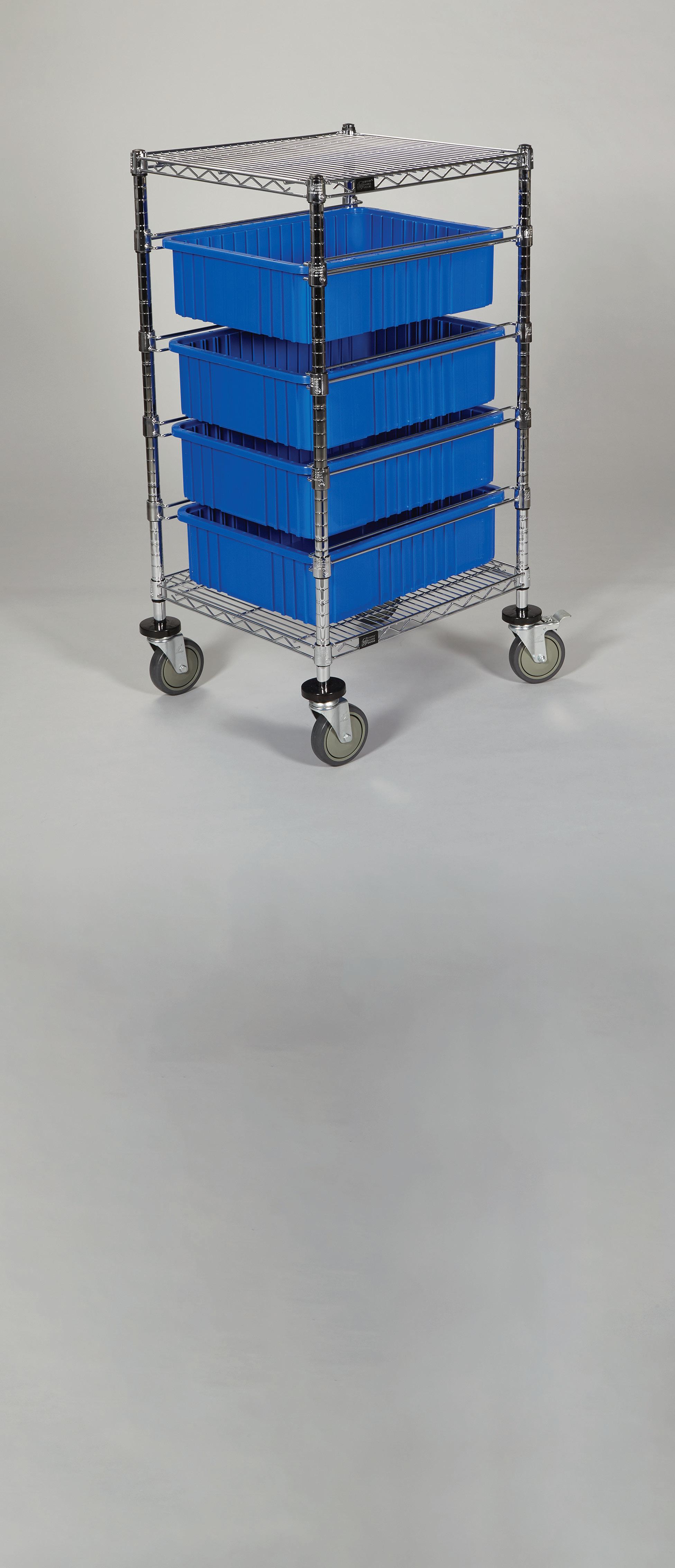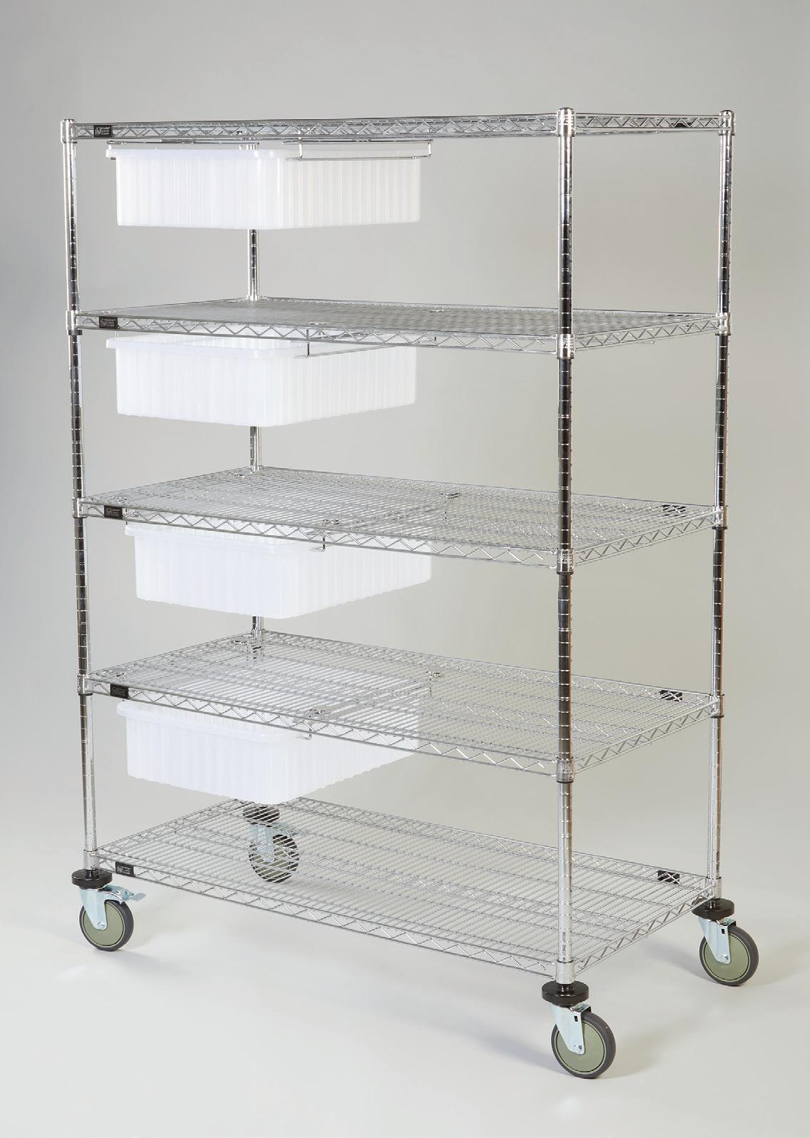 Make Fewer Trips - Combines the convenience of wire shelving and storage bins with mobility for more productive transport. Shelf and bin placement is customizable to accommodate a variety of needs.
