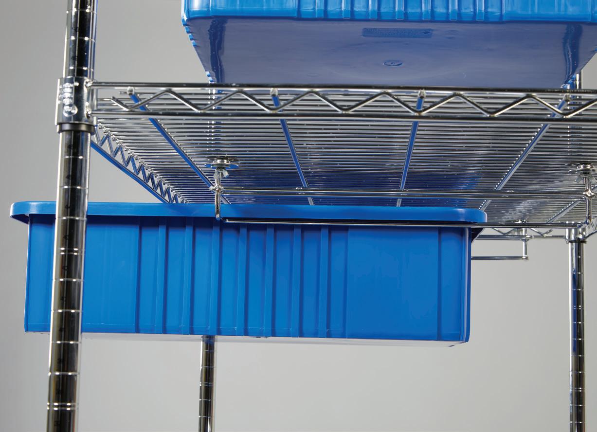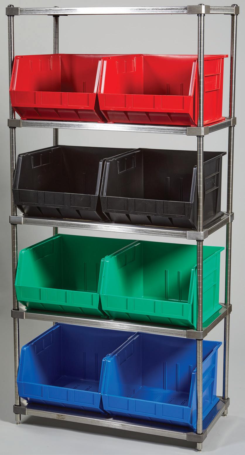 HCL® Super Tough Bins go great with our Stainless Steel Wire Shelving. GOHCL.com/supertoughbins