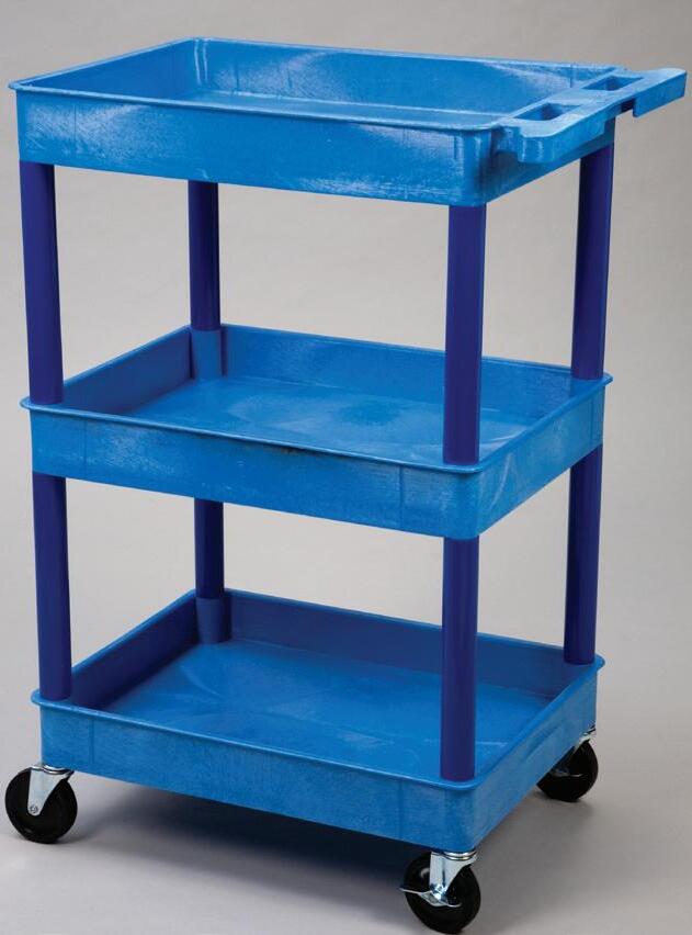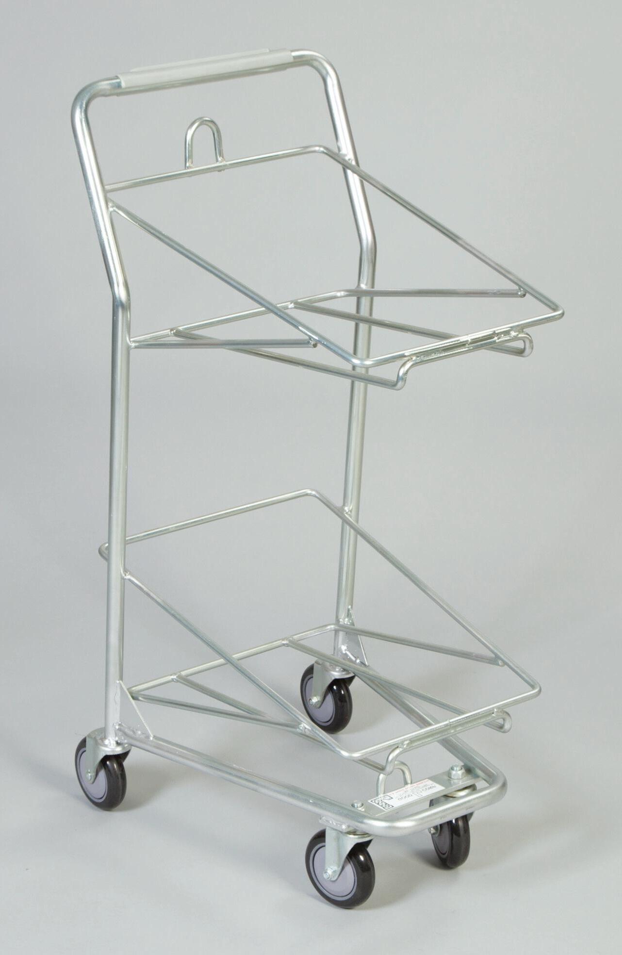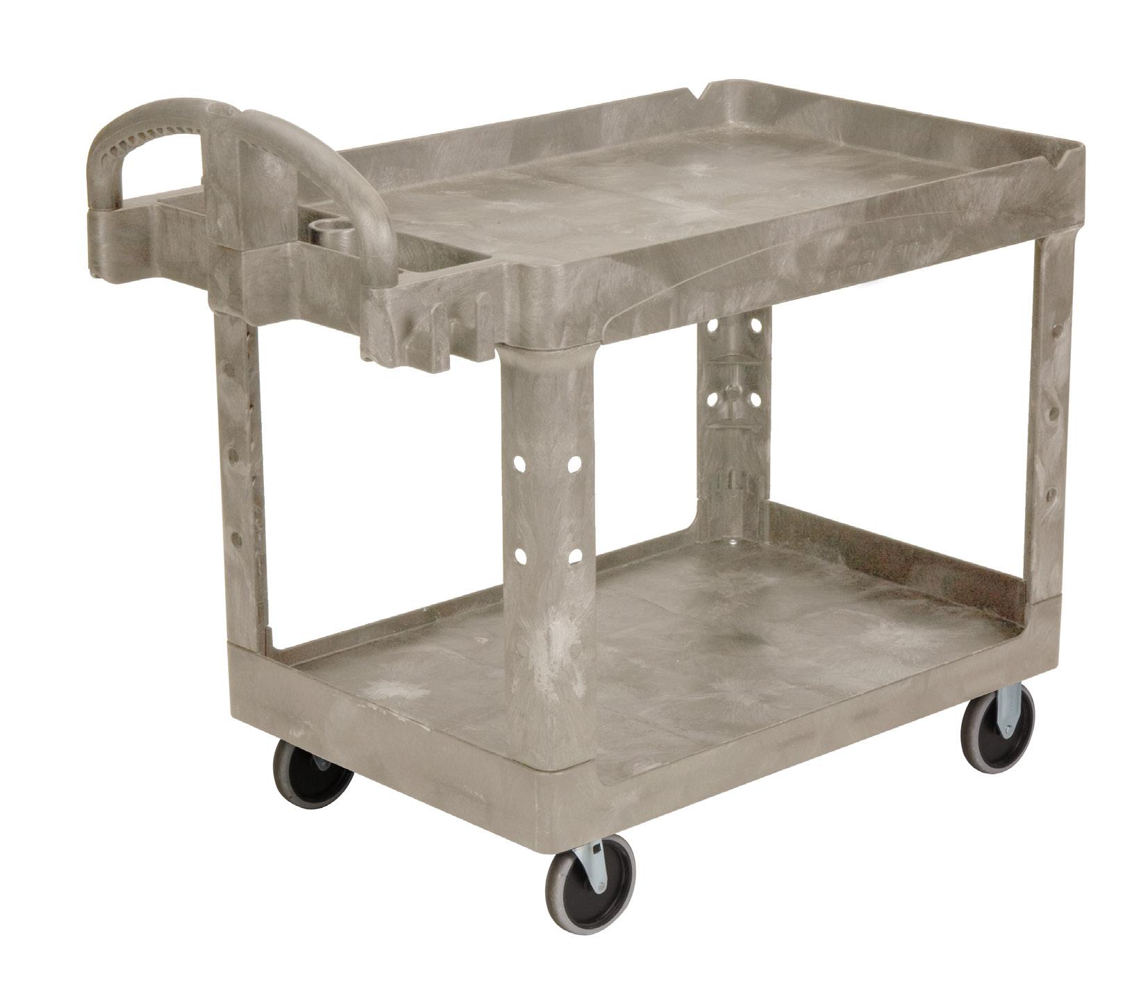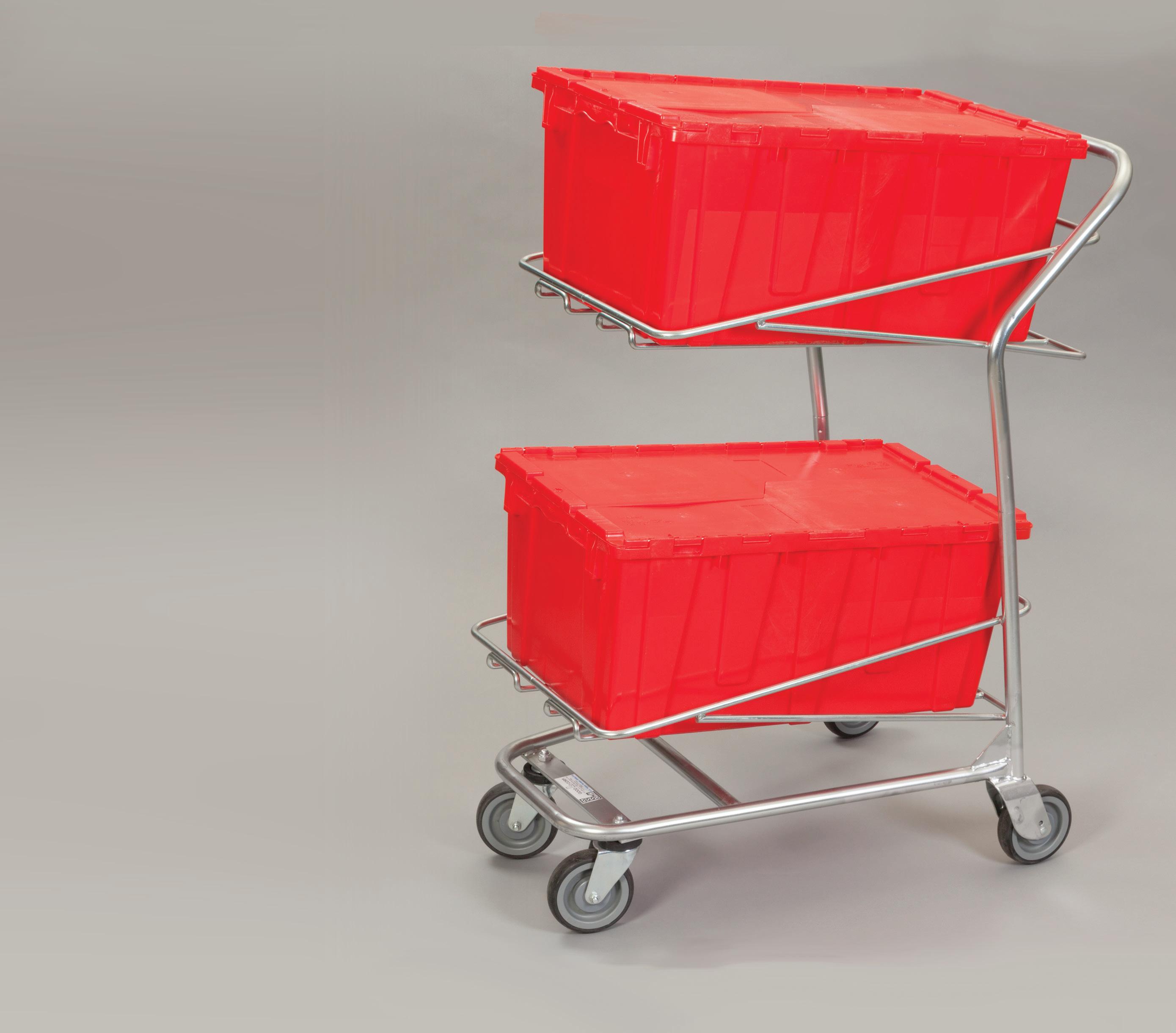 - Holds 2 removable totes that nest when empty - Weight Capacity - 300 lbs. evenly distributed - Casters - 4 (2 fixed, 2 swivel)