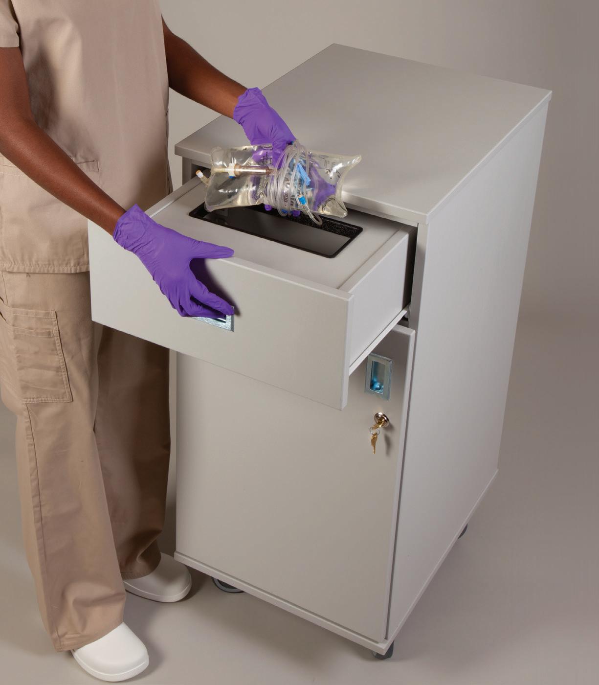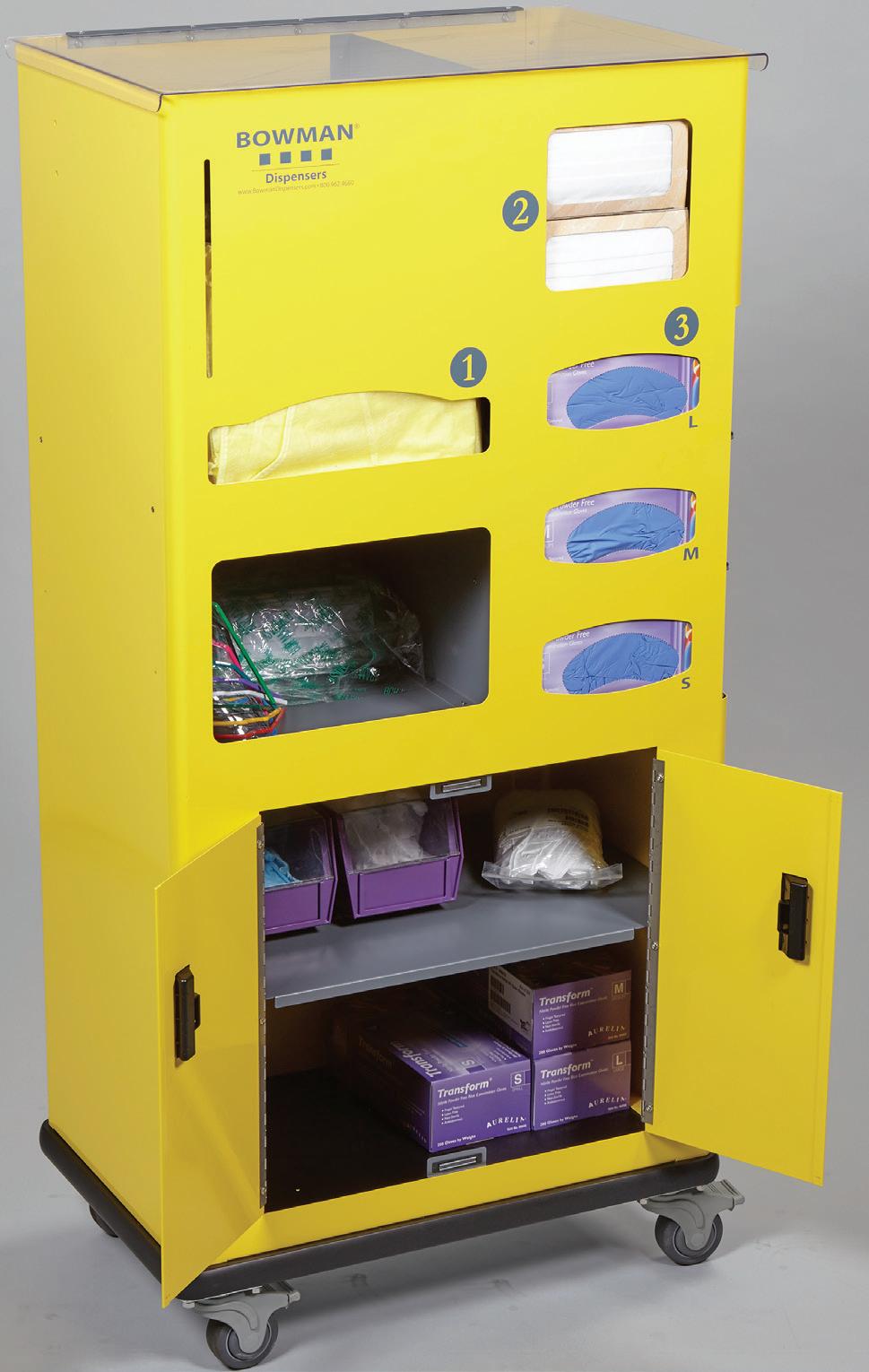 Centralized Storage - Provides convenient access to a variety of PPE supplies anywhere in the facility and helps improve USP <800> compliance.