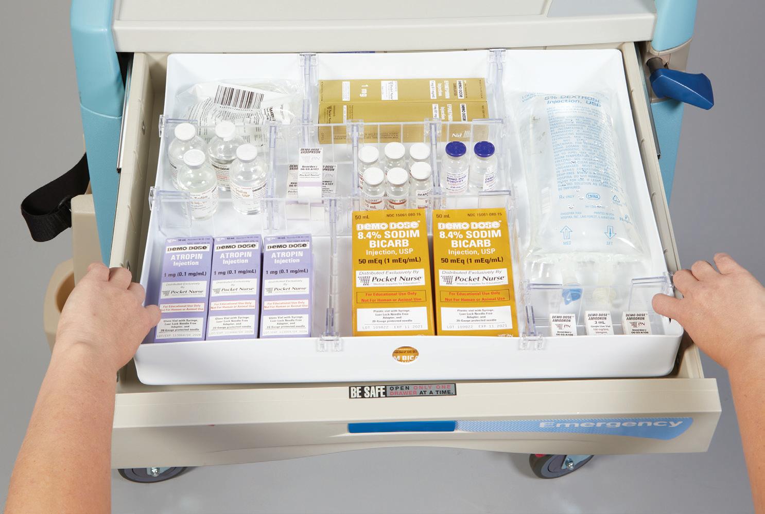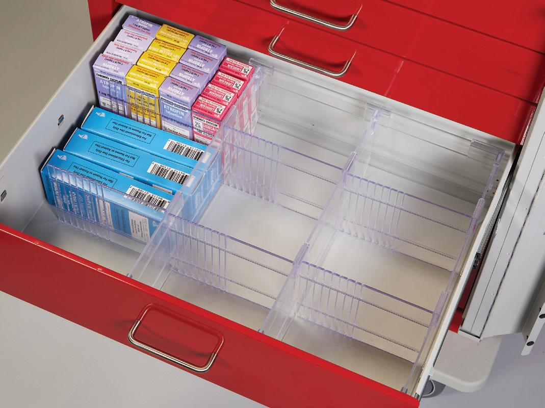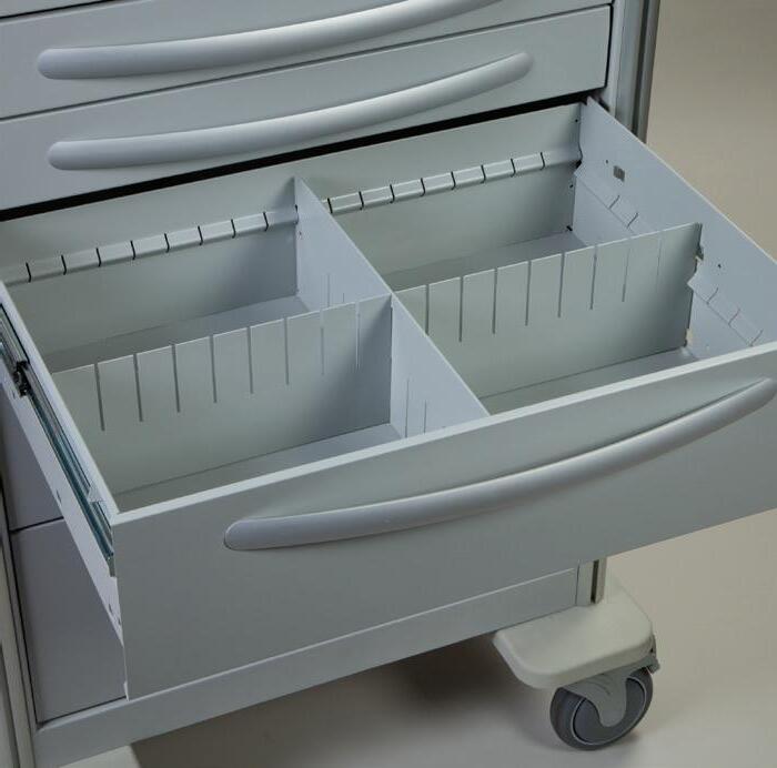 - Drawers - (3) 3"H, (2) 6"H, (1) 10"H; 6" and 10" drawers include 2 front to back dividers. All drawers include active retention guides for automatic closure.