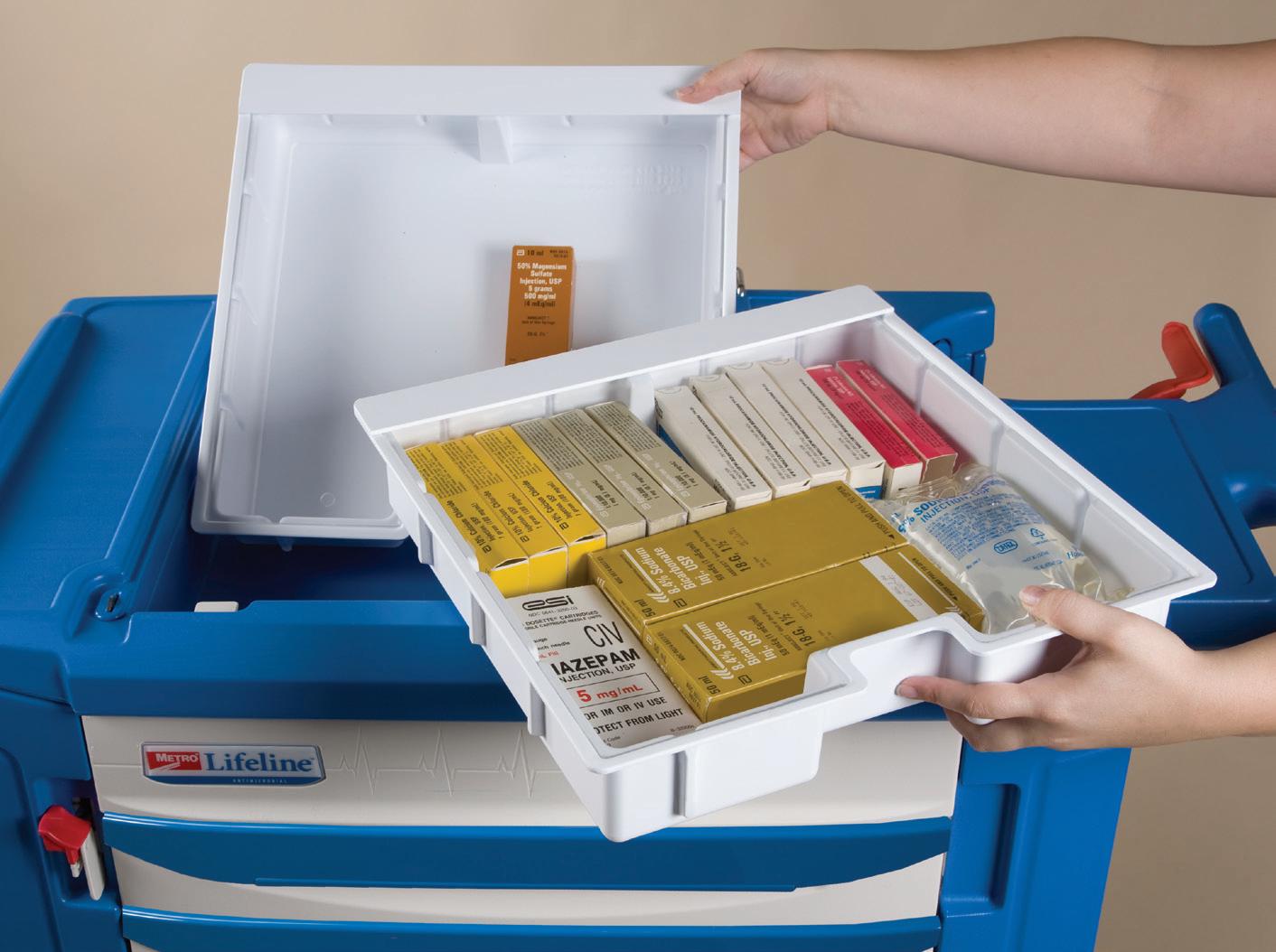 Trays and Baskets can be used with our procedure cart and the Easy Exchange System storage rack. they all work together!