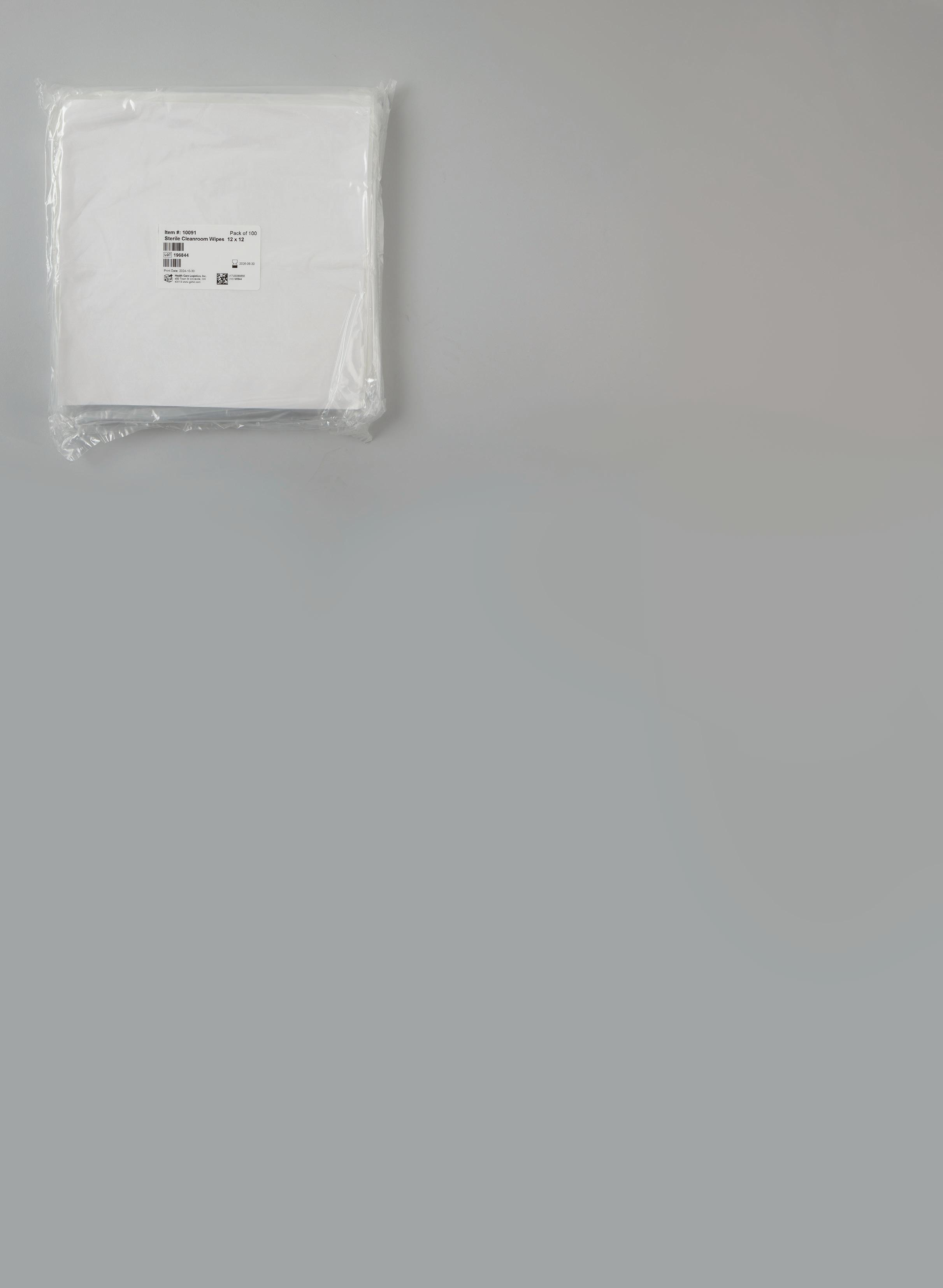 10" x 18" polyester wipes are laundered to minimize particulate. Use in conjunction with the spray disinfectant of choice to clean any non-sterile, hard surface.