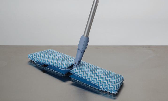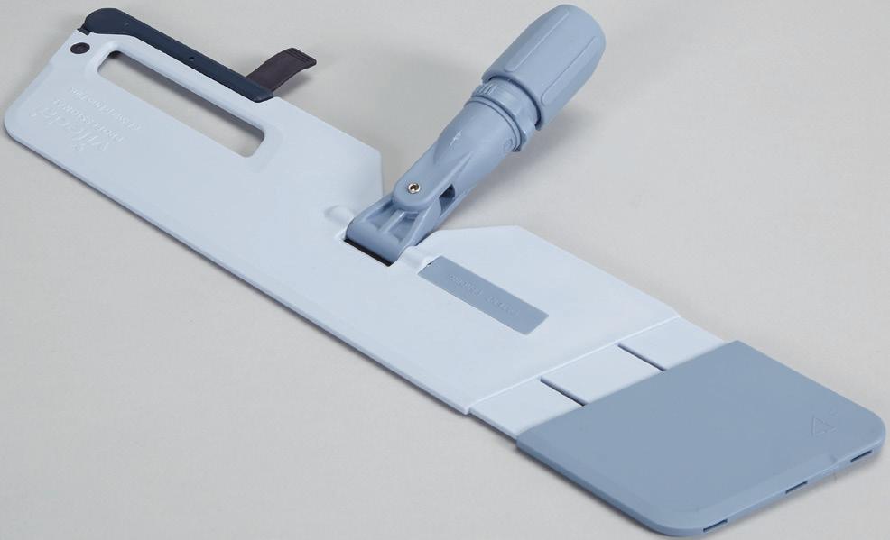 stainless steel mophead swivels 360º for easy maneuverability in tight spaces. Triangular mophead shape allows for improved access in tight corners. Mophead can be locked for 180º swivel when desired.