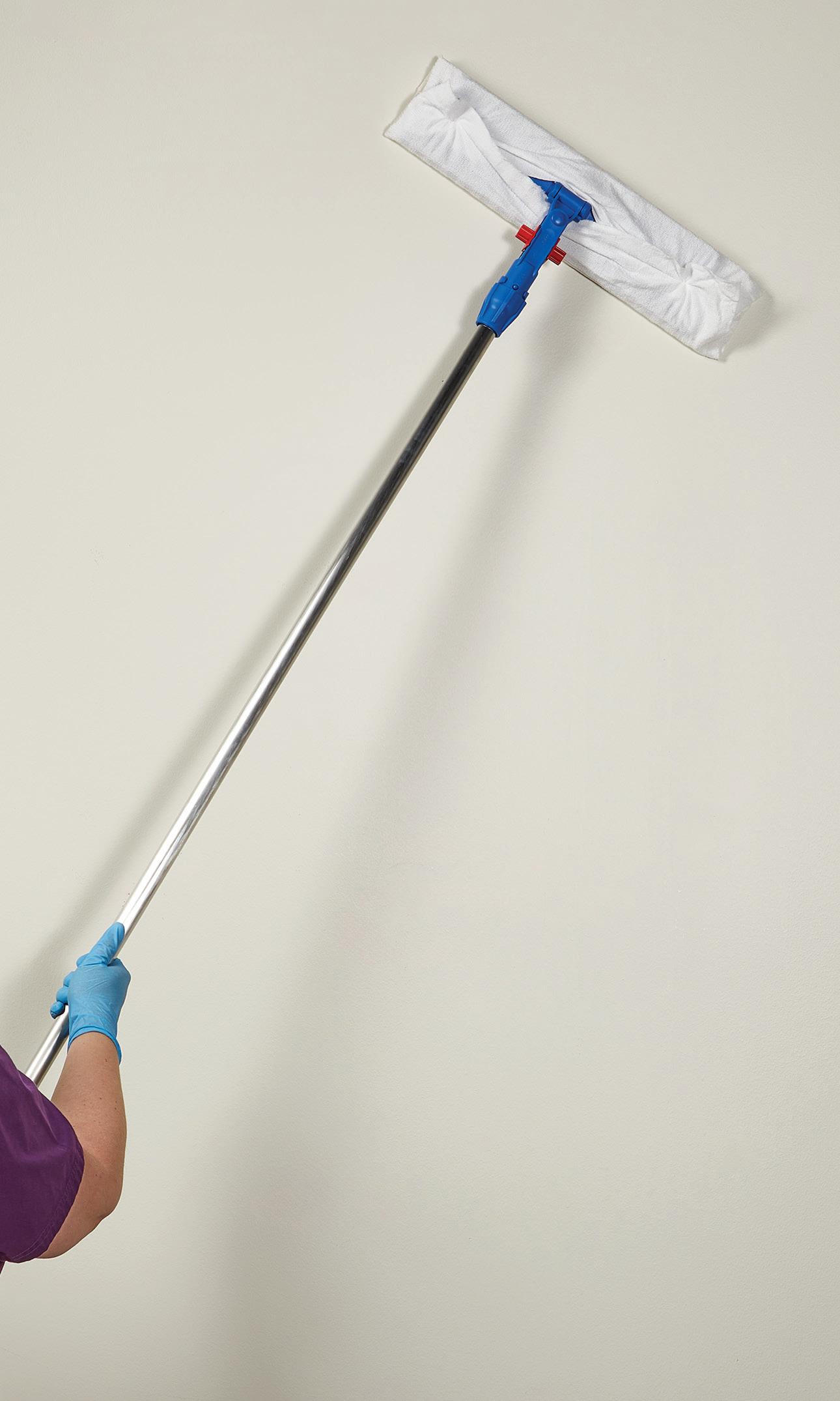 Save Time, Reduce Strain - Allows for quick and effective cleaning of walls and ceilings in critical environments. Curved design helps maintain surface contact. Self-wringing design renders manual wringing obsolete, saving time and reducing strain.
