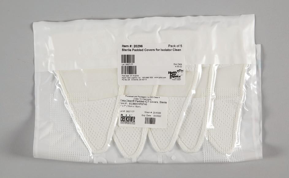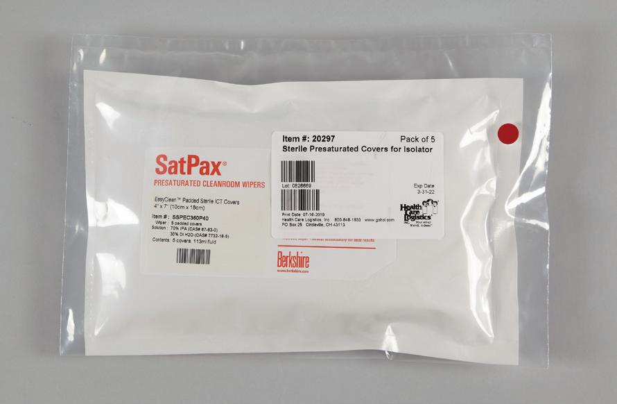 Fewer Materials - Because they are presaturated, these sterile covers reduce the number of items needed in the cleanroom and simplify the disinfection process. Sterile covers are presaturated with 70% IPA and 30% DI water.